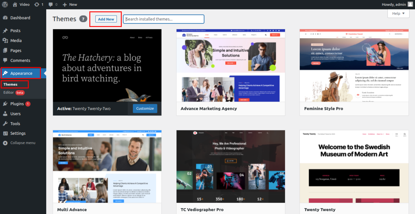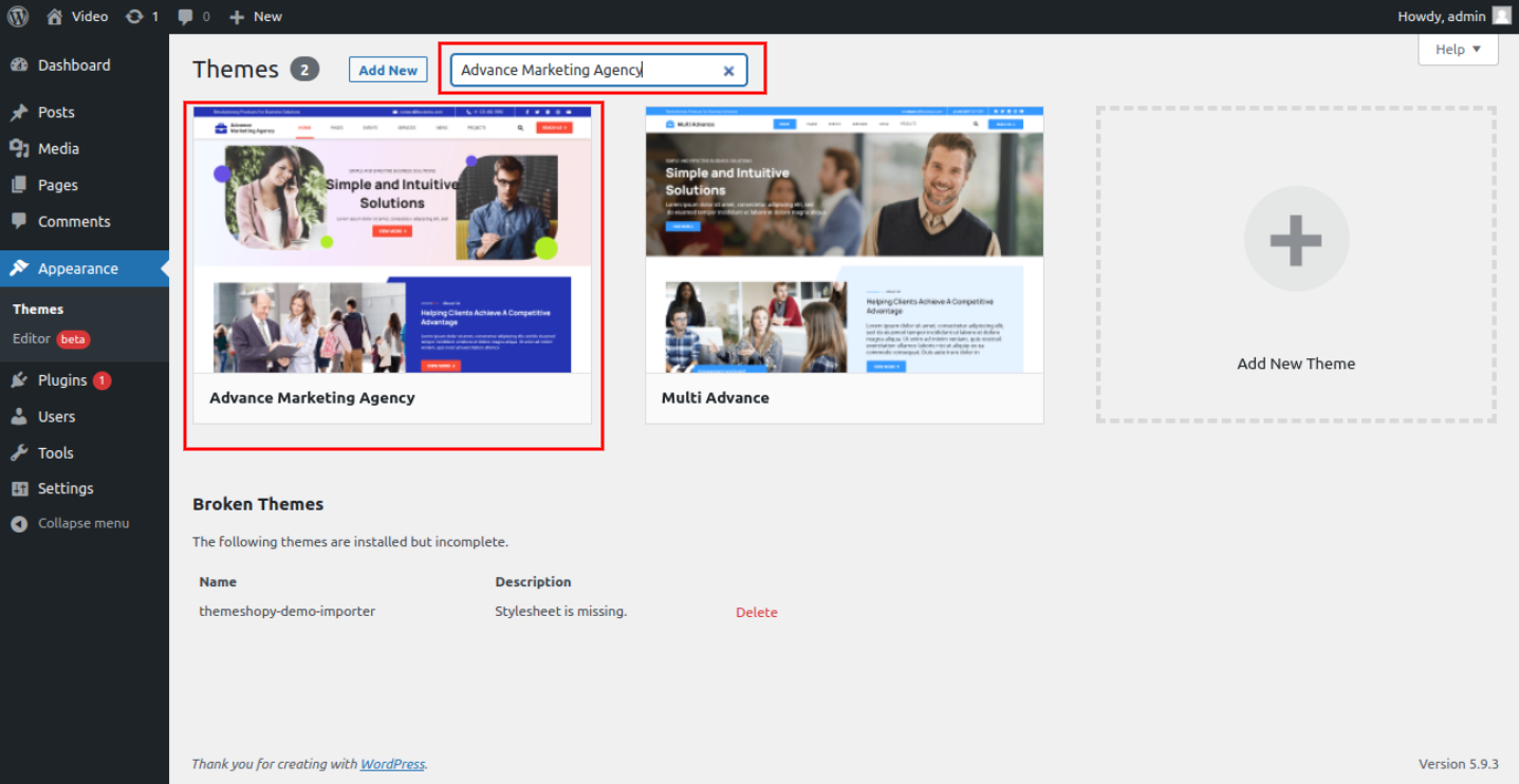 Install a Theme using WordPress Admin Theme Search