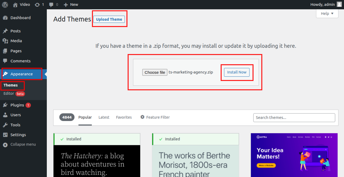 Install a Theme by using Upload Method from WordPress Admin