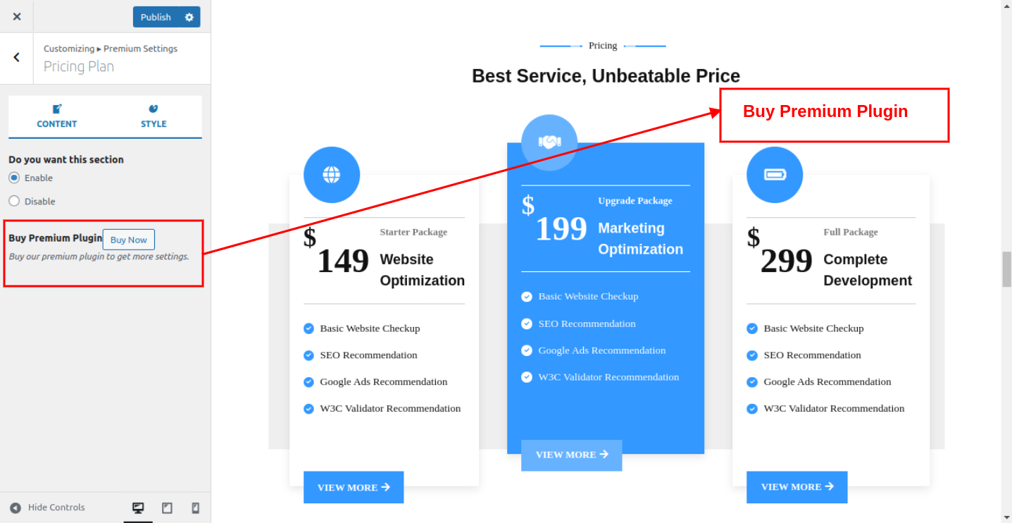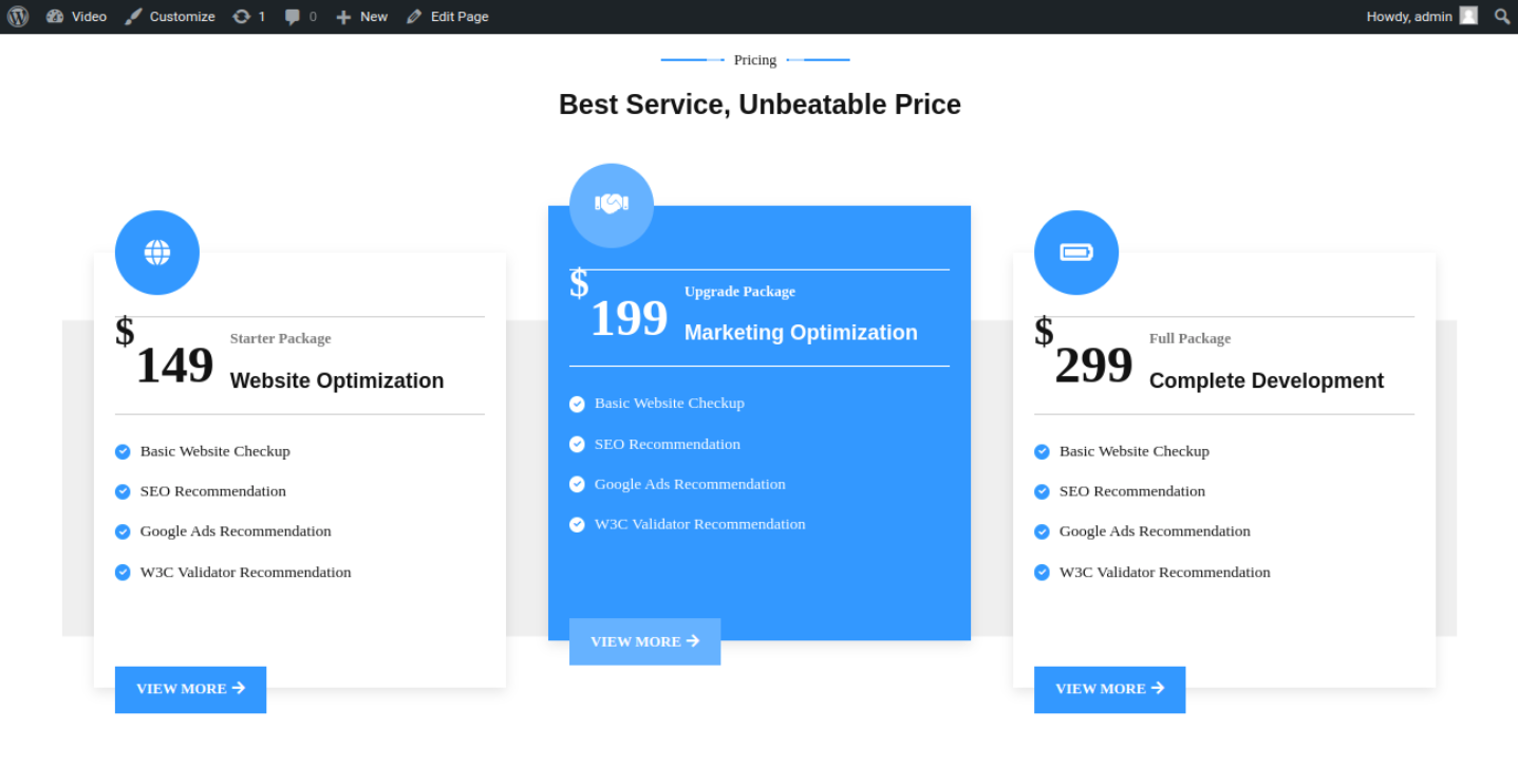 Go to Appearance >> Customize >> Theme Settings >> Pricing Plan