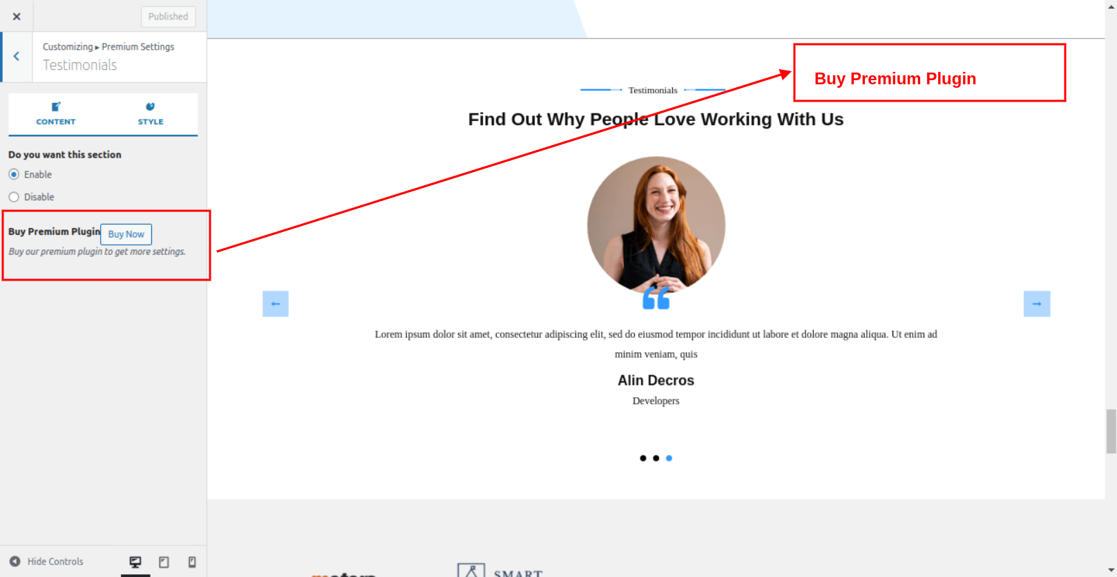 Go to Appearance >> Customize >> Theme Settings >> Testimonial