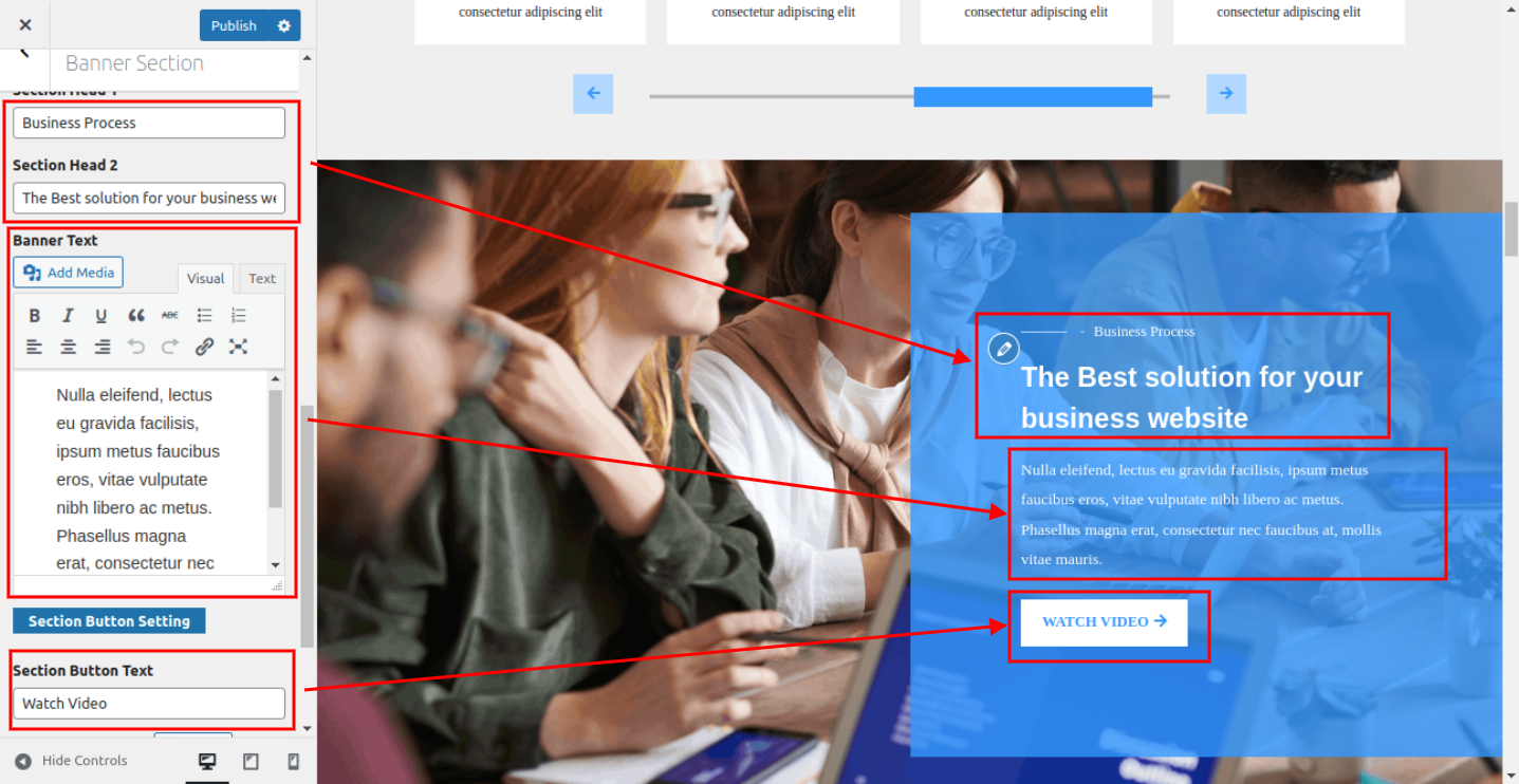 Go to Appearance >> Customize >> Theme Settings >> Our Banner