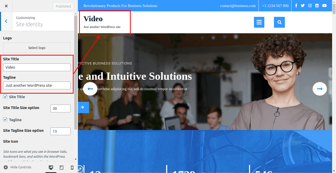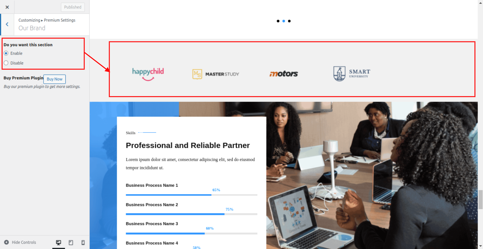 Go to Appearance >> Customize >> Theme Settings >> Our Brand