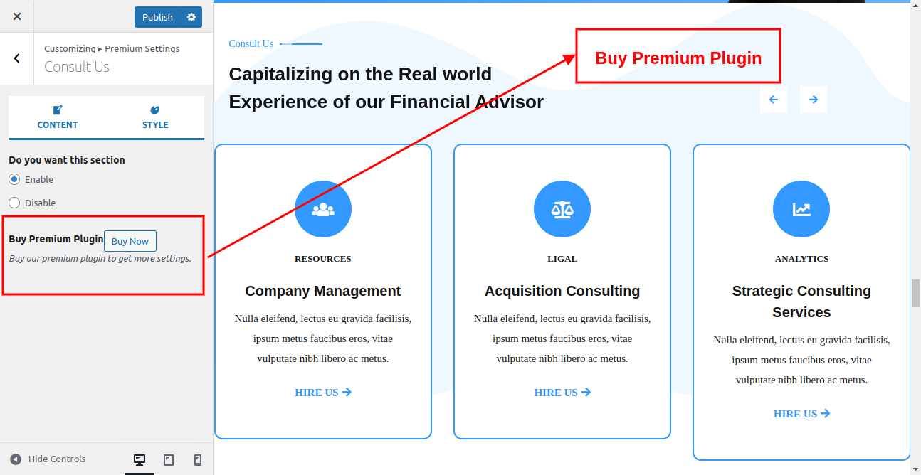 Go to Appearance >> Customize >> Theme Settings >> Consult Us Section