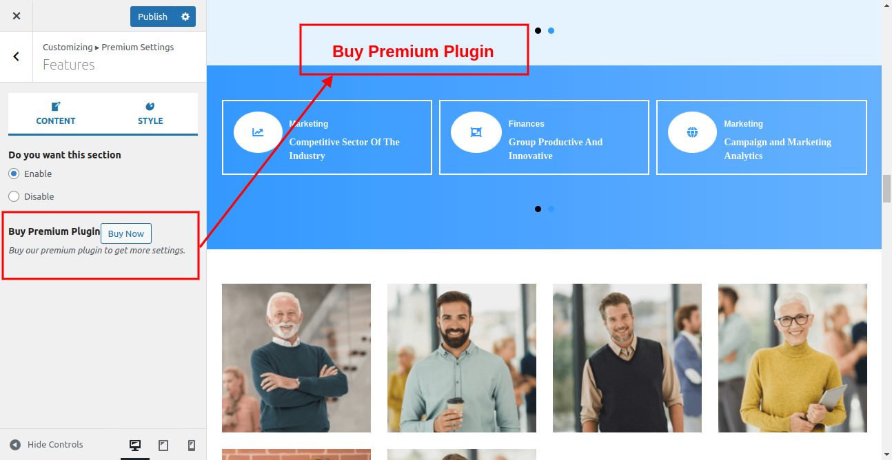 Go to Appearance >> Customize >> Theme Settings >> Our Feature