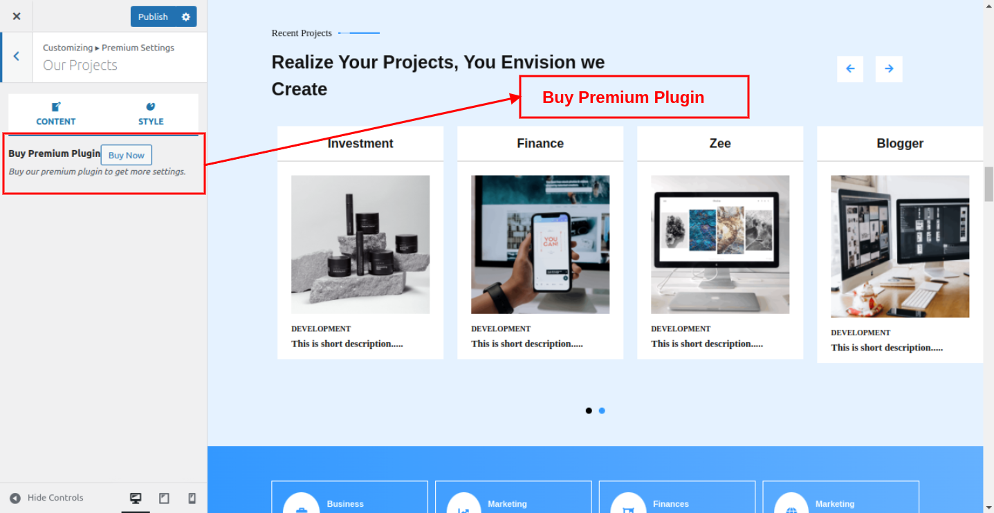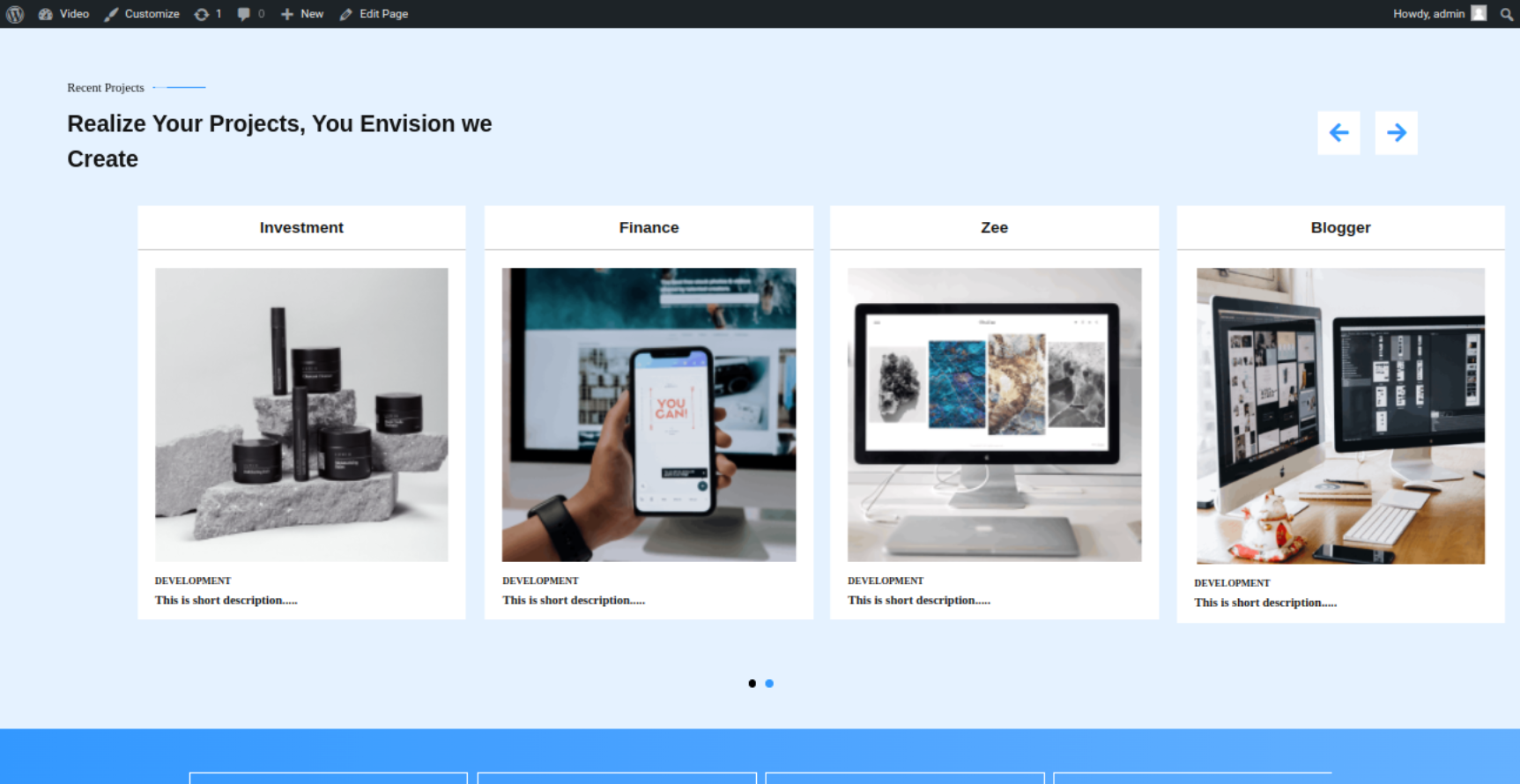 Go to Appearance >> Customize >> Theme Settings >> Our Projects