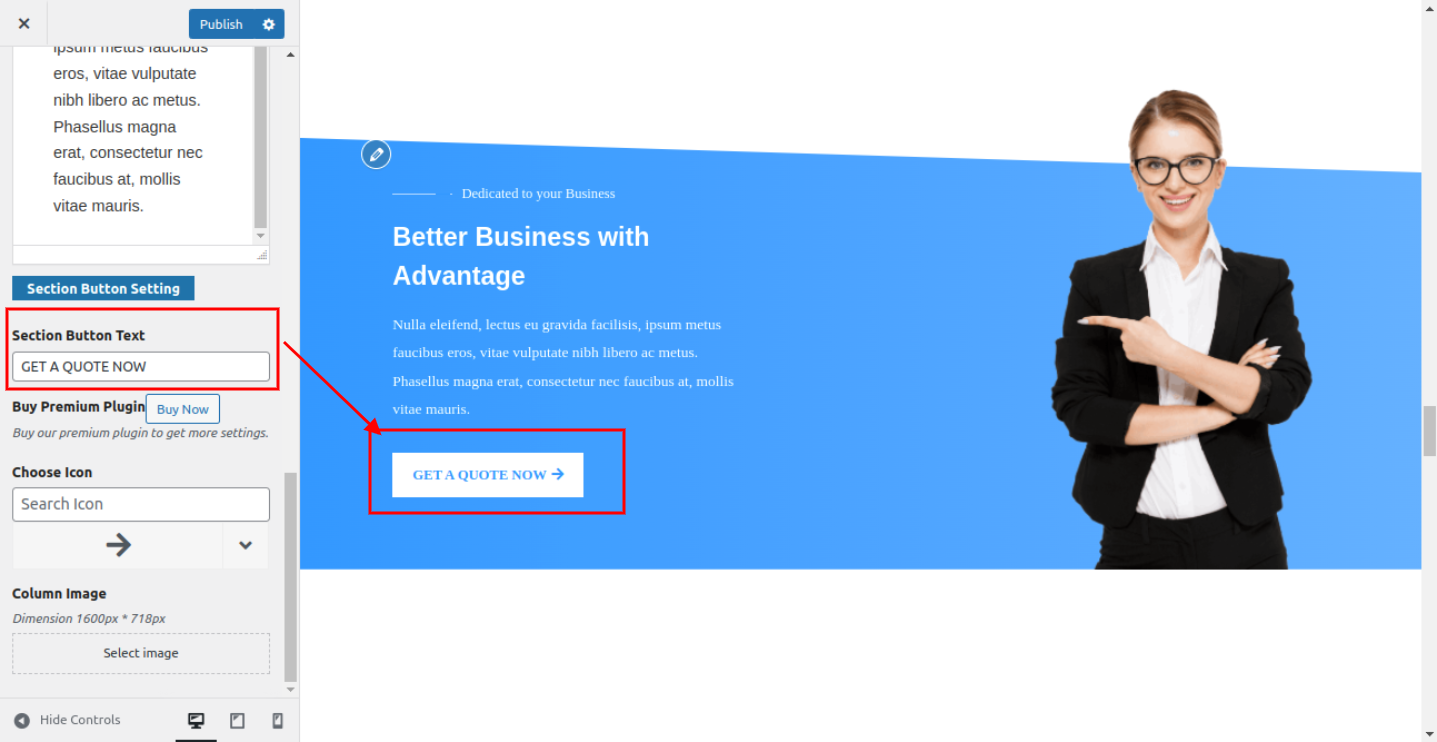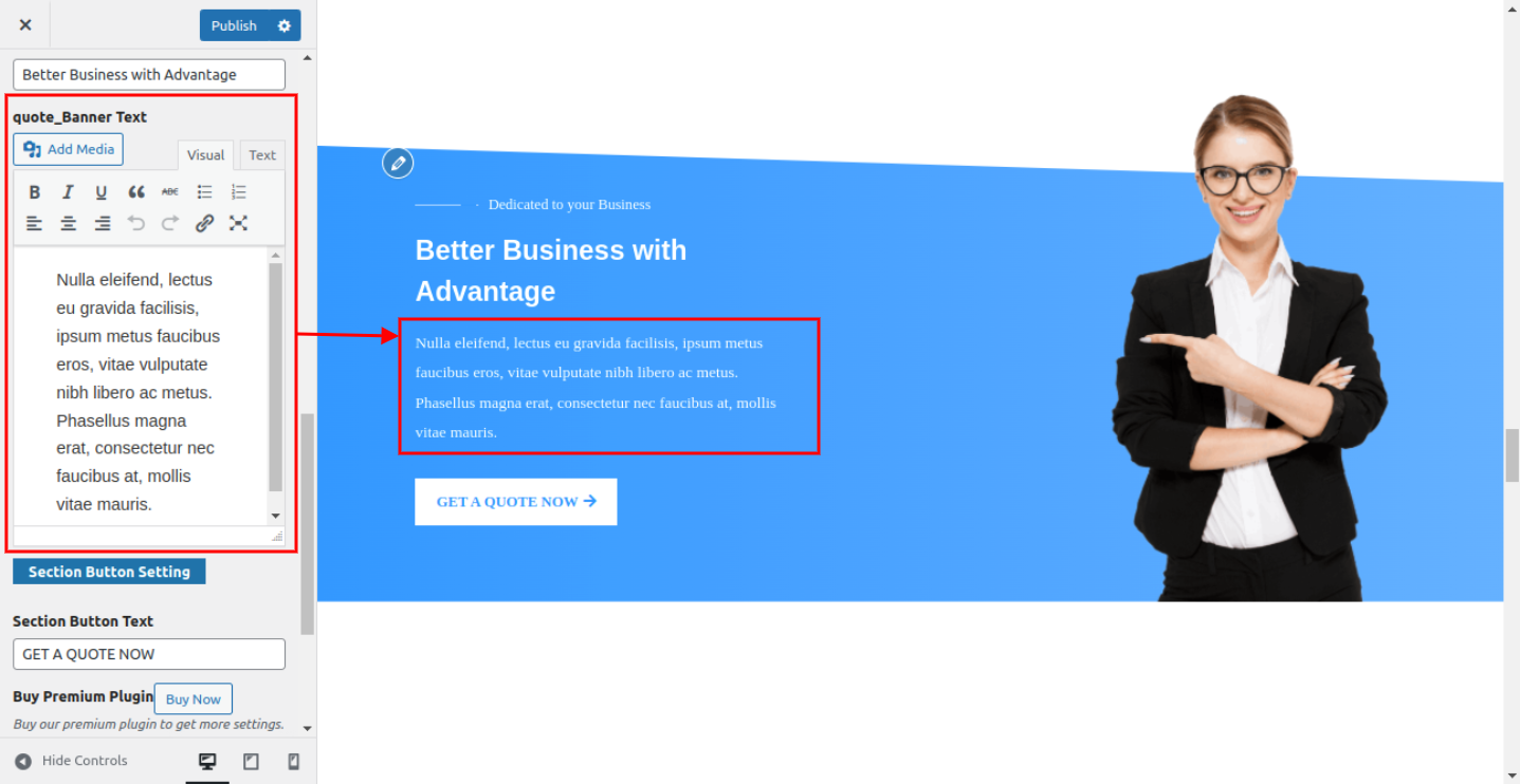 Go to Appearance >> Customize >> Theme Settings >> Quote Banner Section