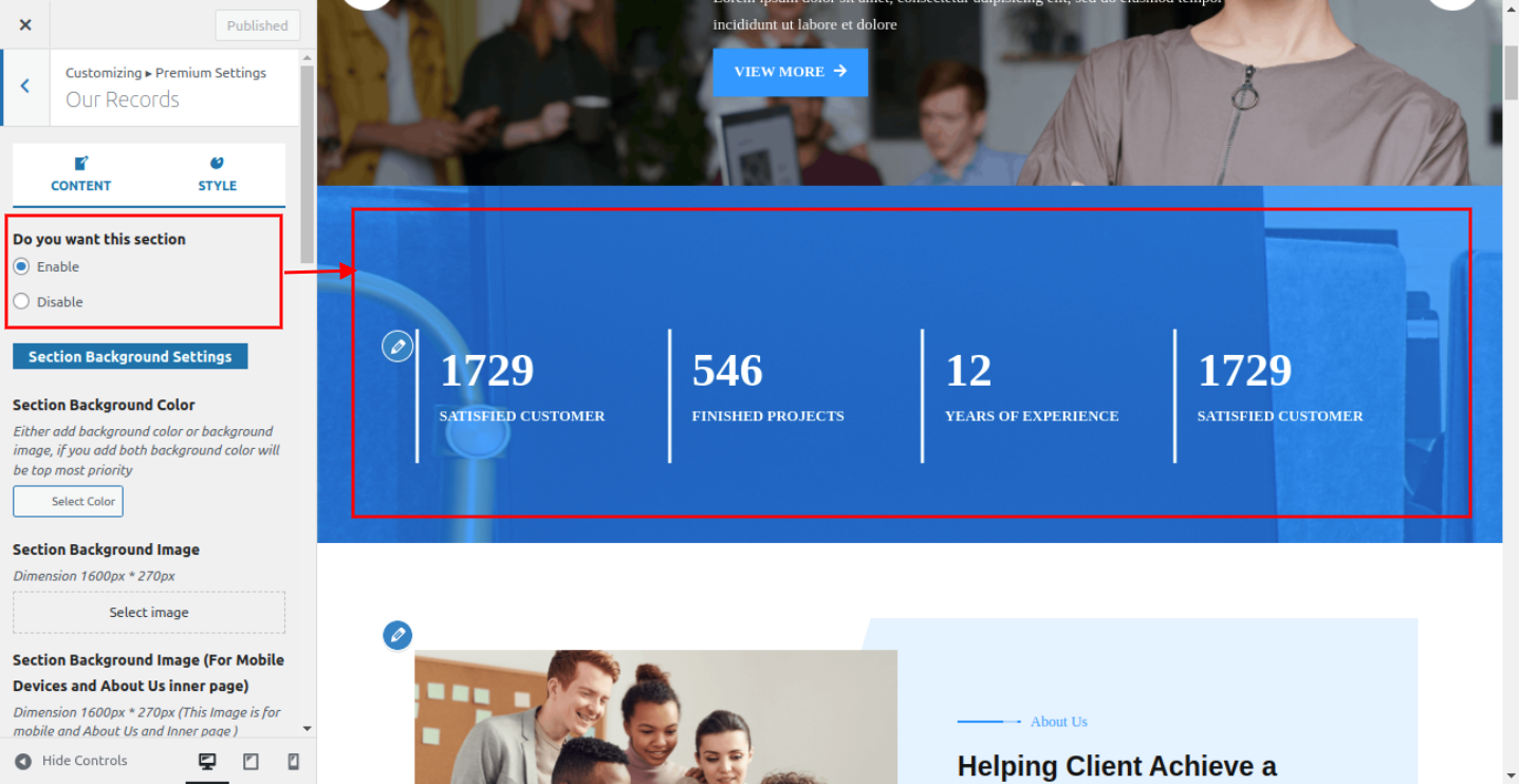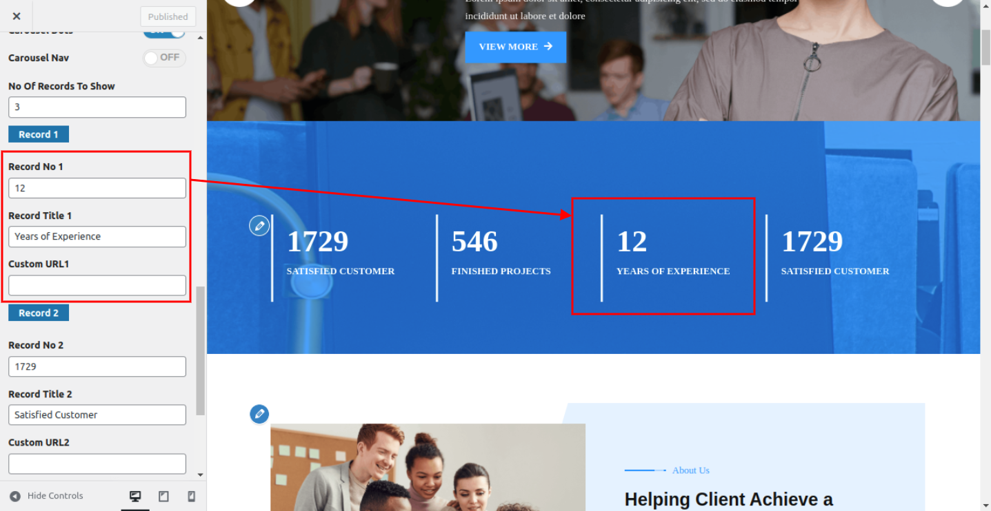 Go to Appearance >> Customize >> Theme Settings >> Our Records