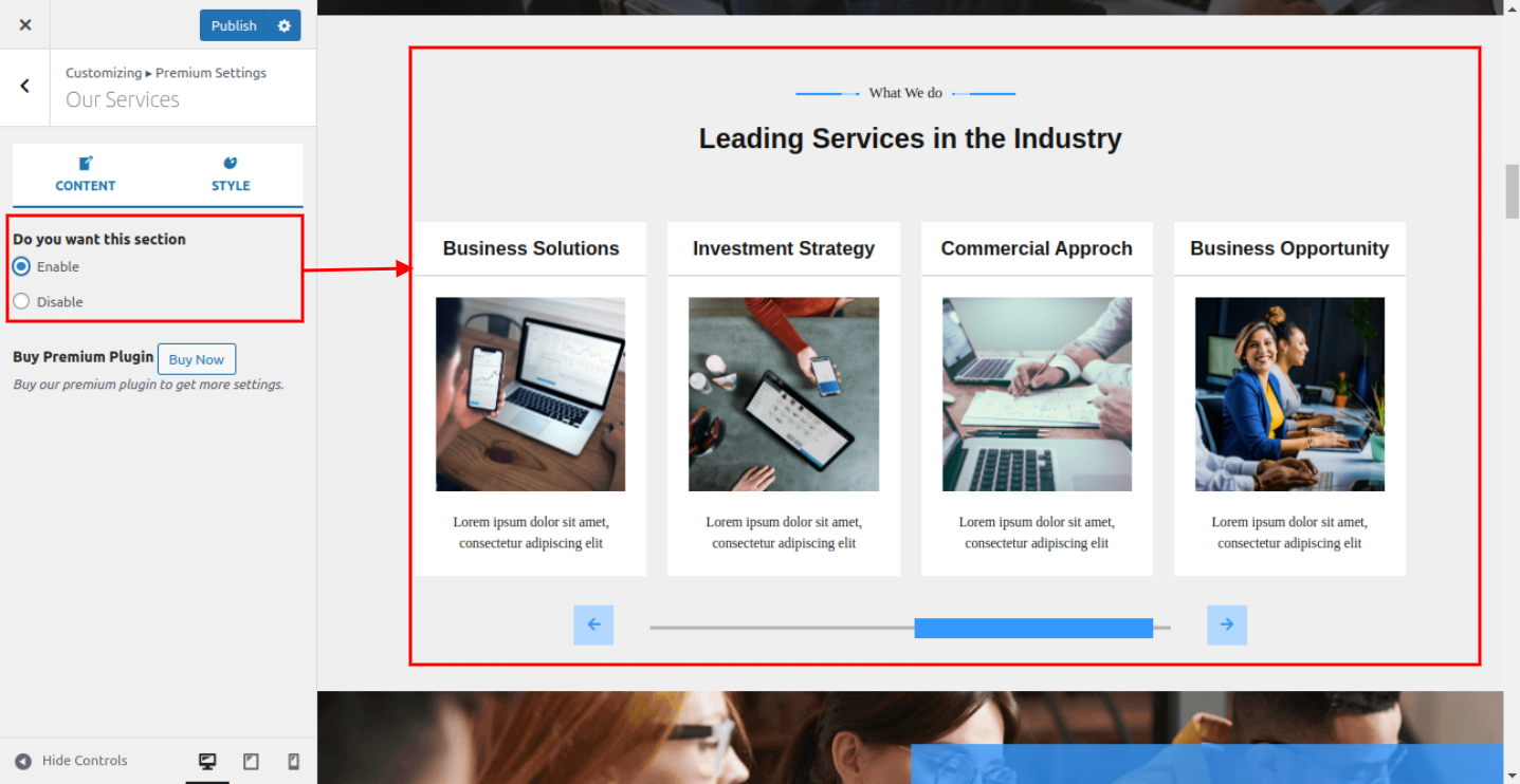Go to Appearance >> Customize >> Theme Settings >> Our Services