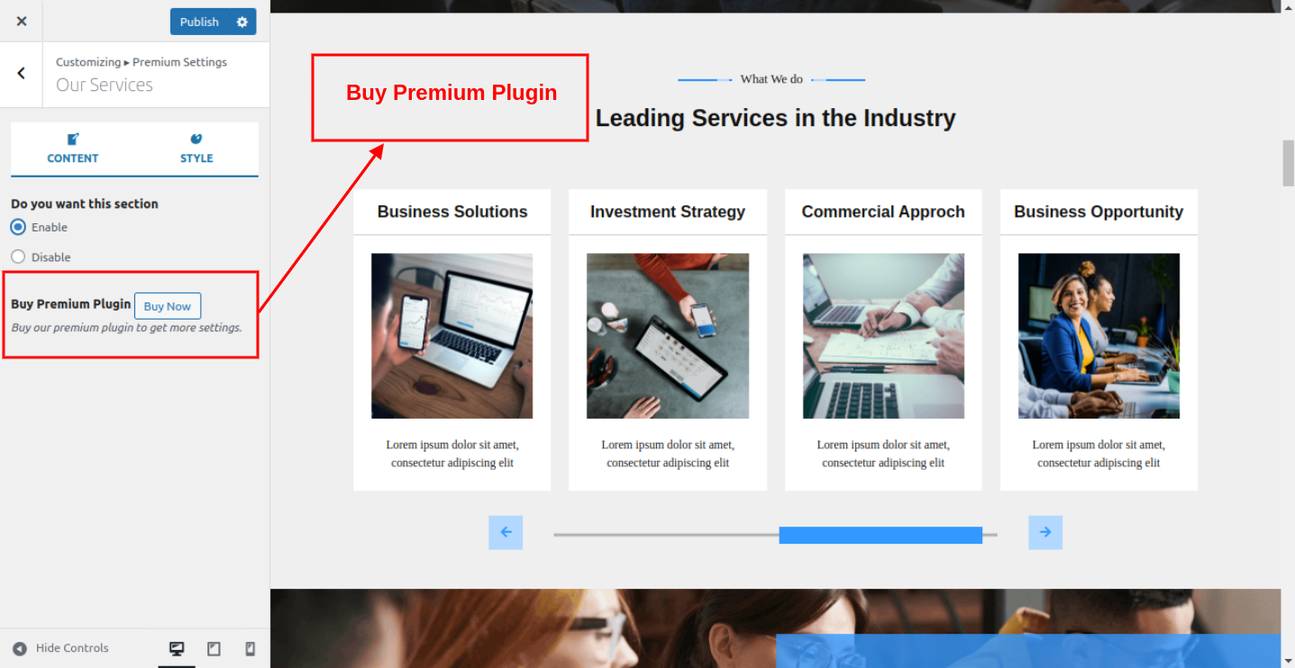 Go to Appearance >> Customize >> Theme Settings >> Additional Services