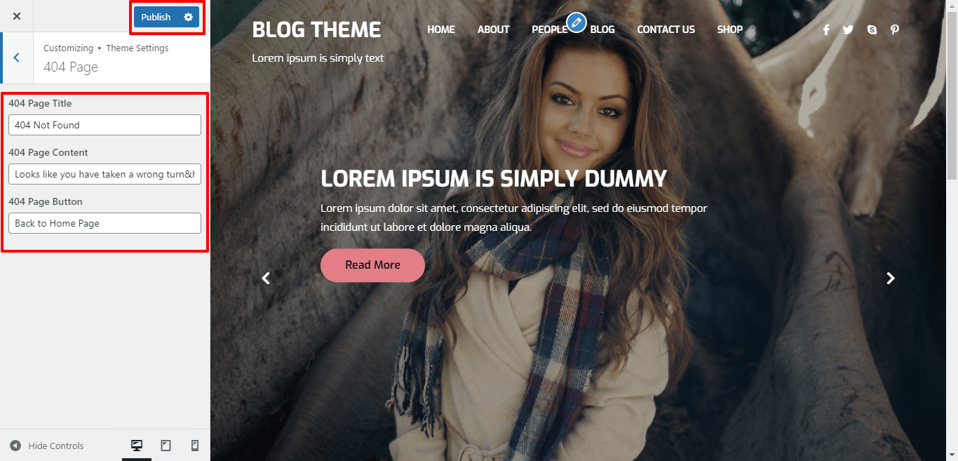 Go to Appearance >> Customize >> Themes Settings >> 404 Page