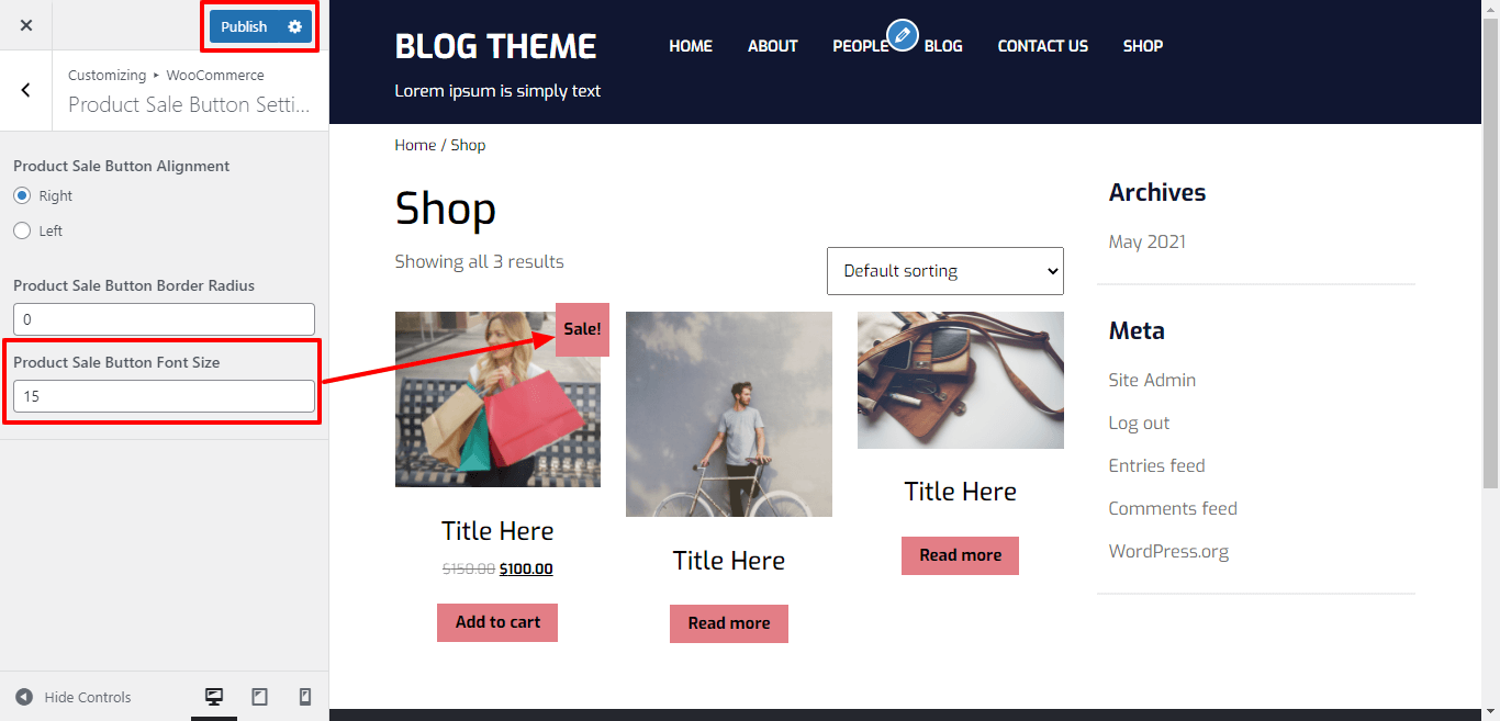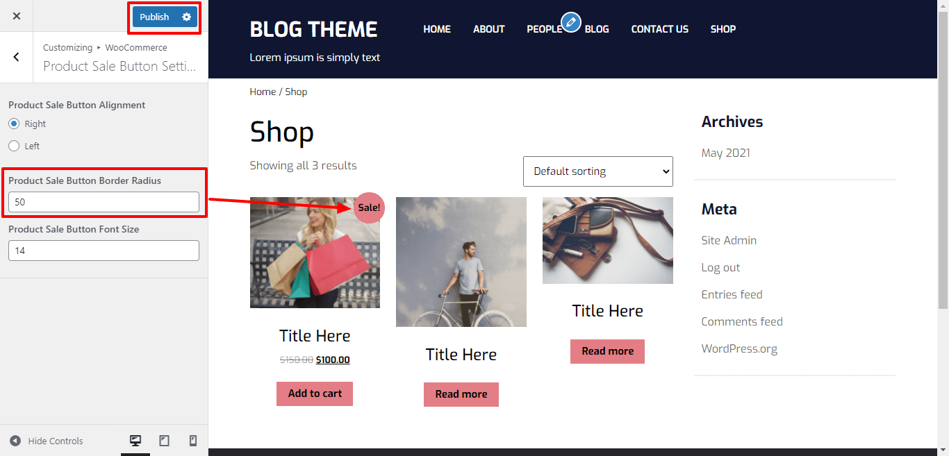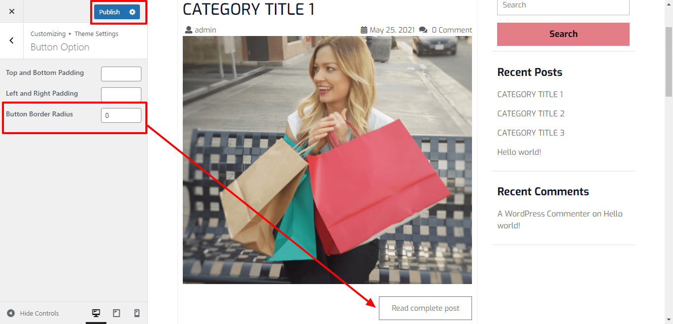 Go to Appearance >> Customize >> Theme Settings >> Button Options