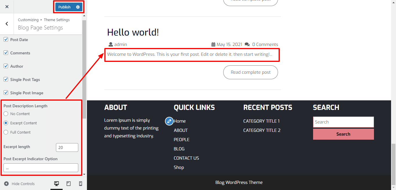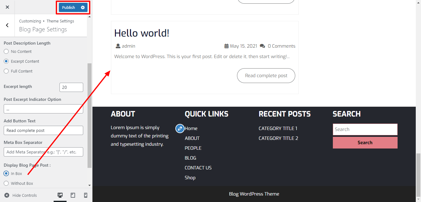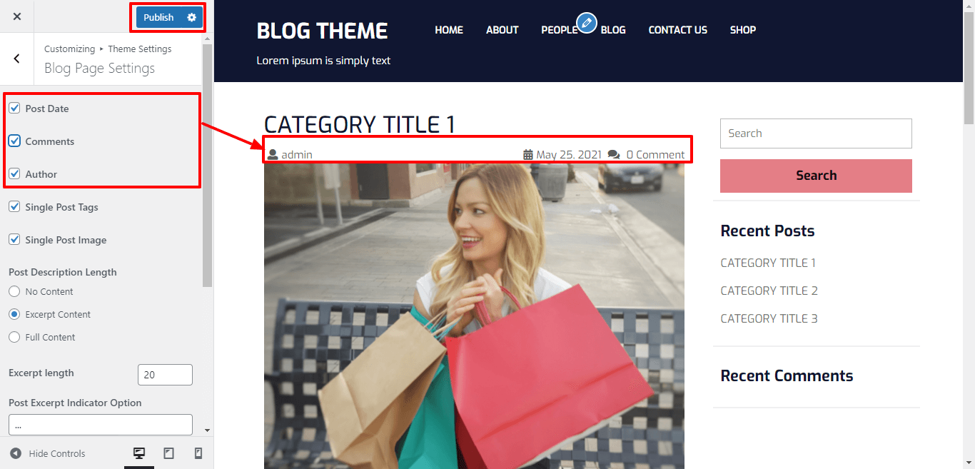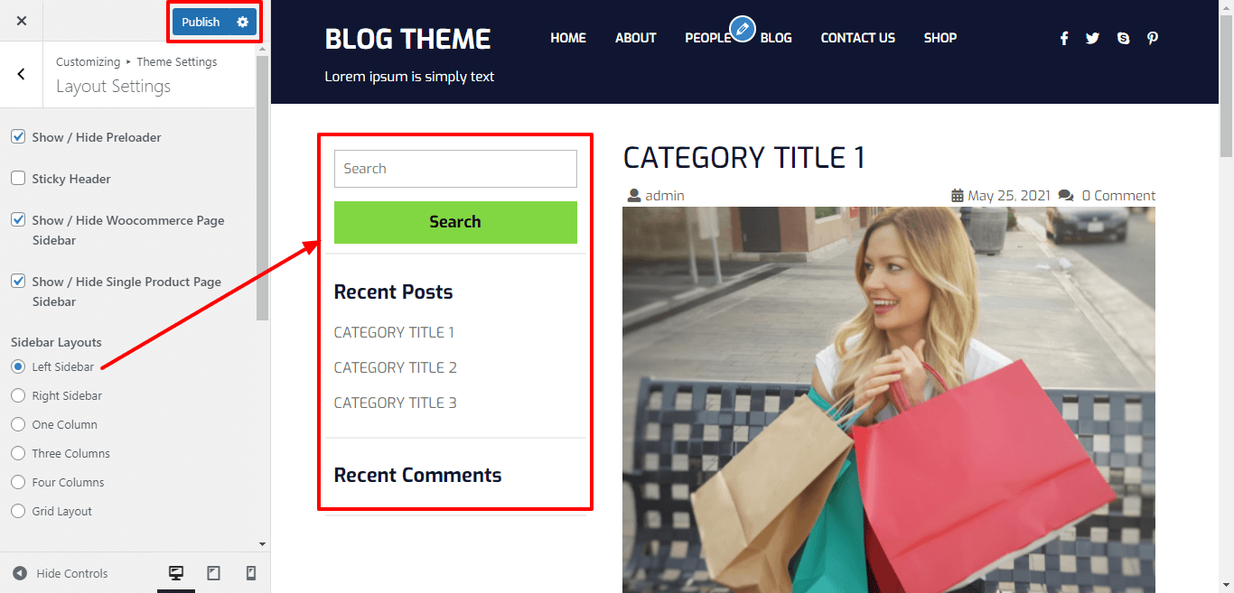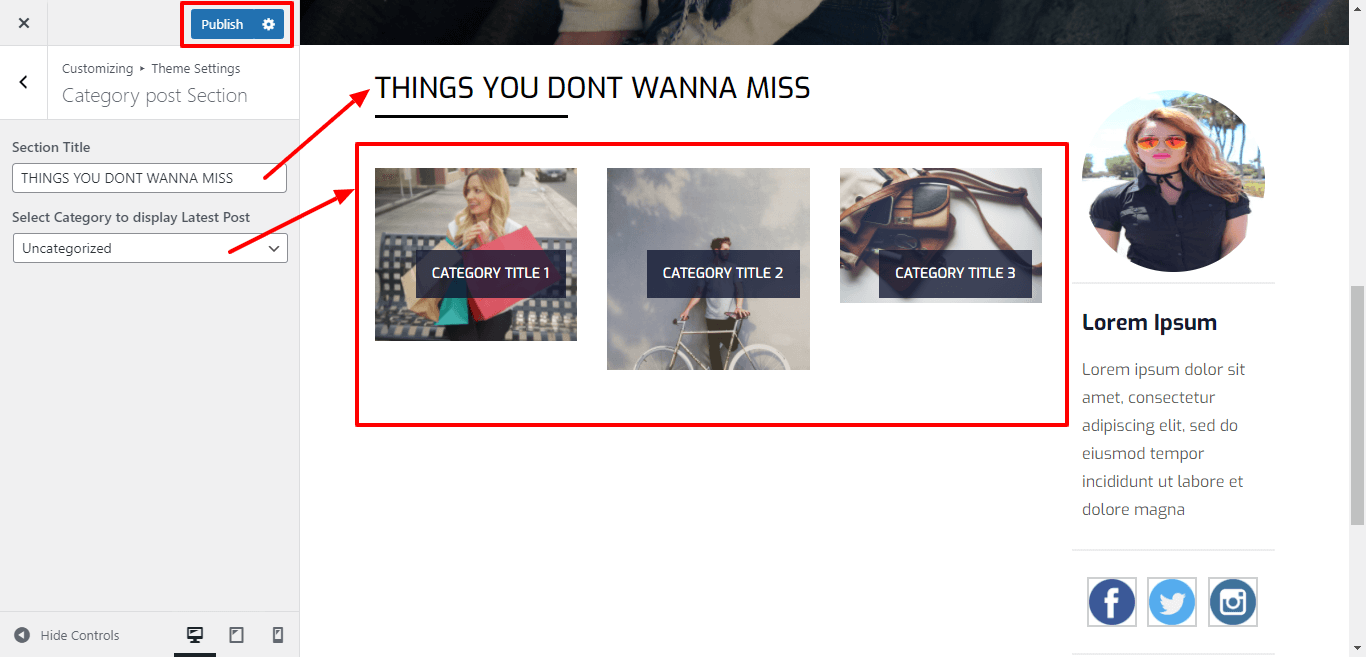 2. Go to Appearance >> Customize >>Theme setting >> Category Post Section