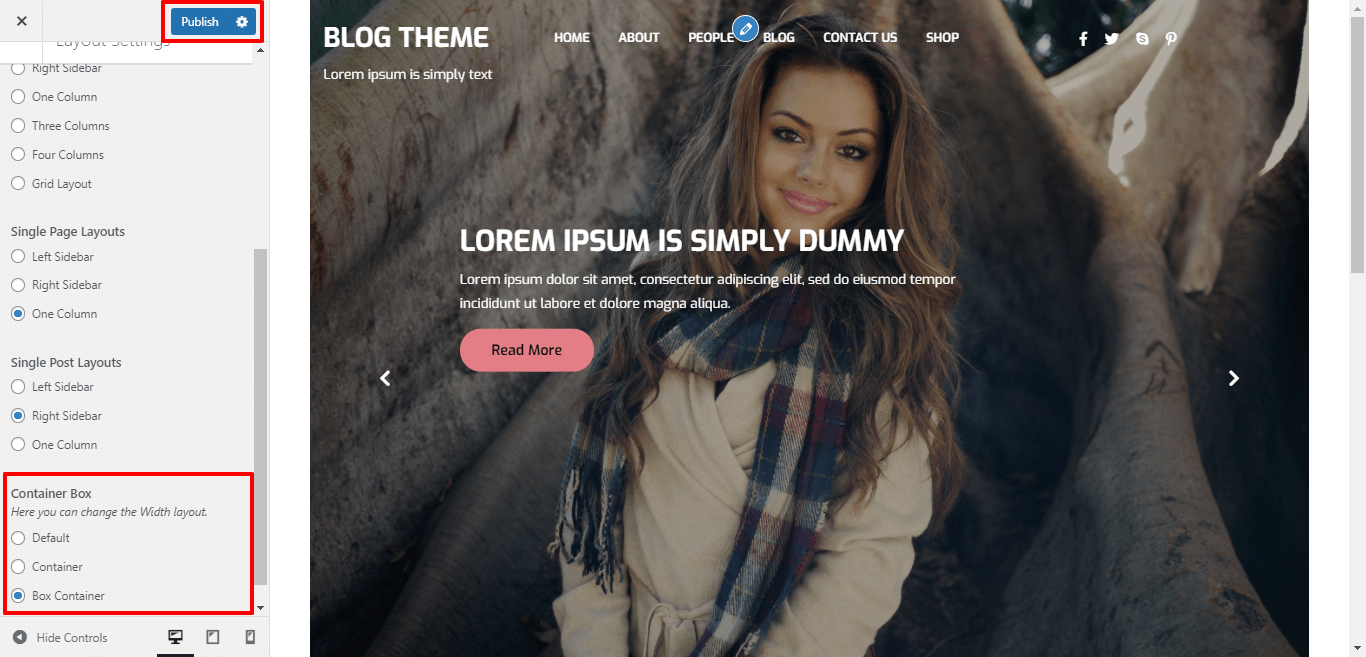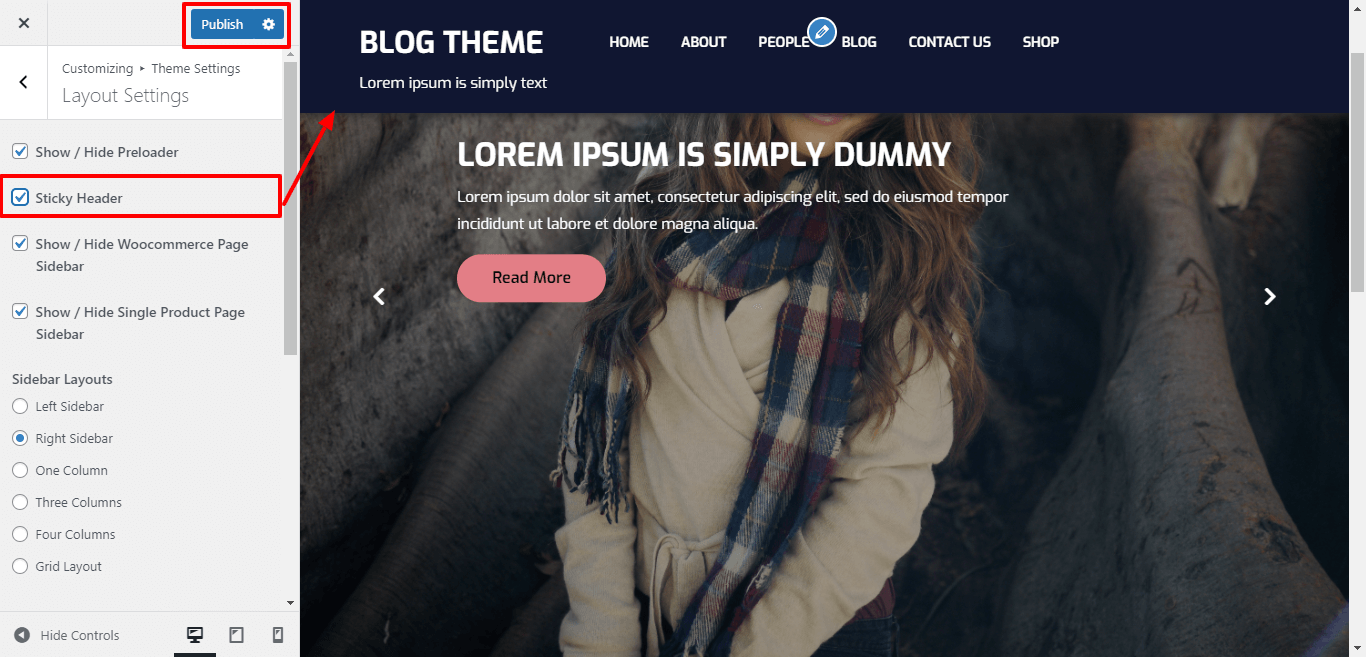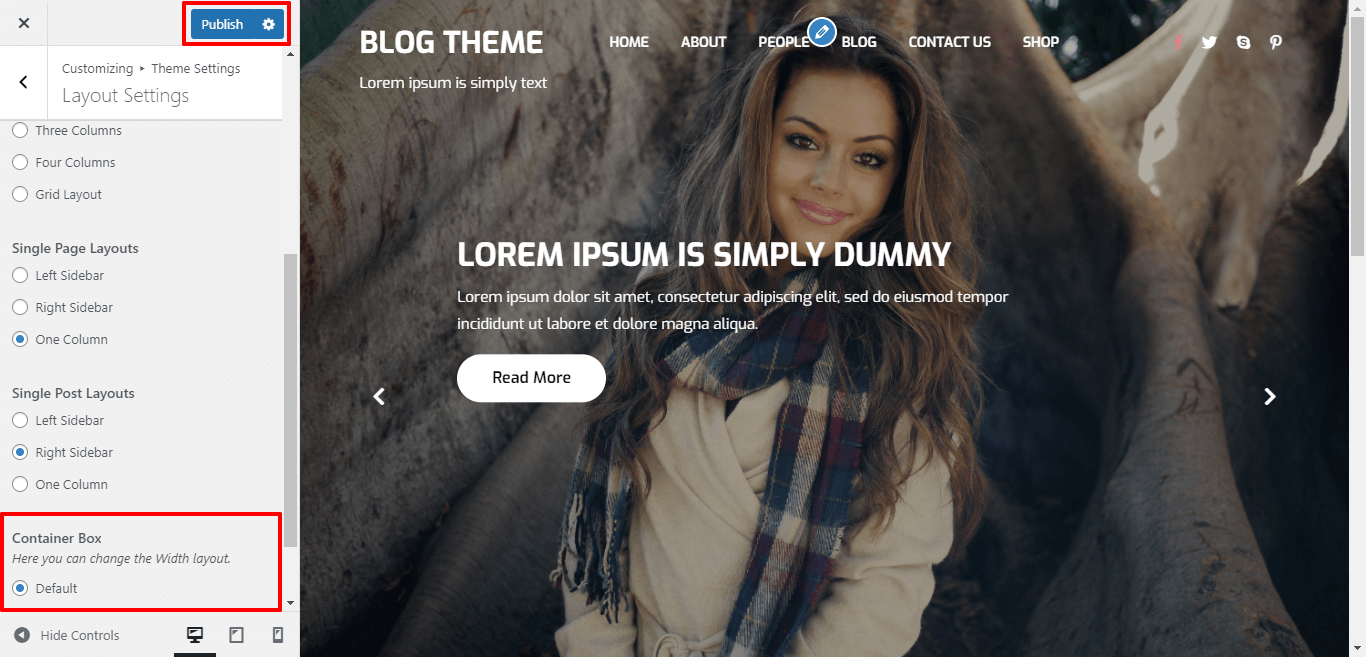 Go to Appearance >> Customize >> Themes Settings >> Layout Settings