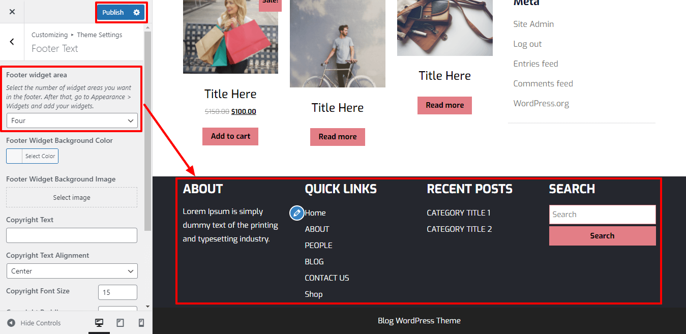 Here you can add the copyright text , copyright text alignment, copyright font size and padding for copyright text.