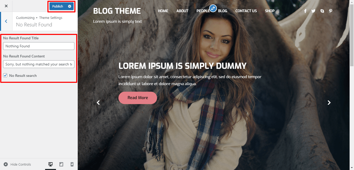 Go to Appearance >> Customize >> Themes Settings >> No Result Found