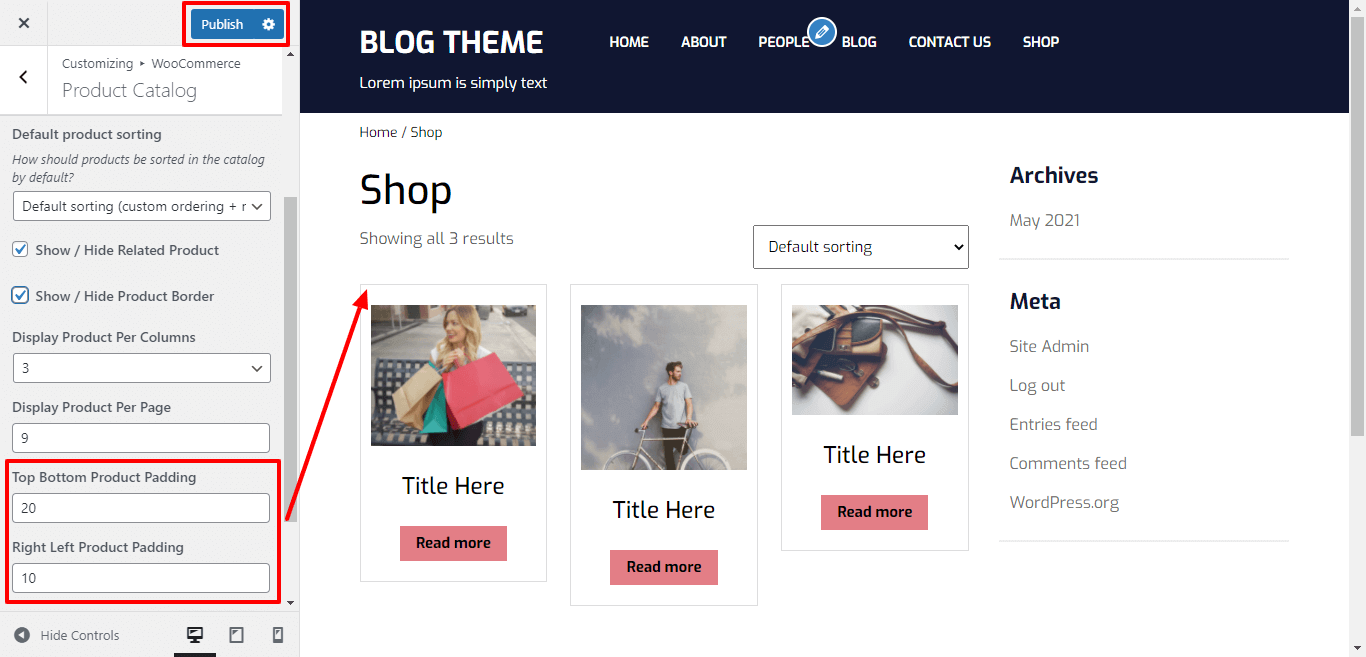 Here You have an option to top-bottom, left-right padding for product border and image.
