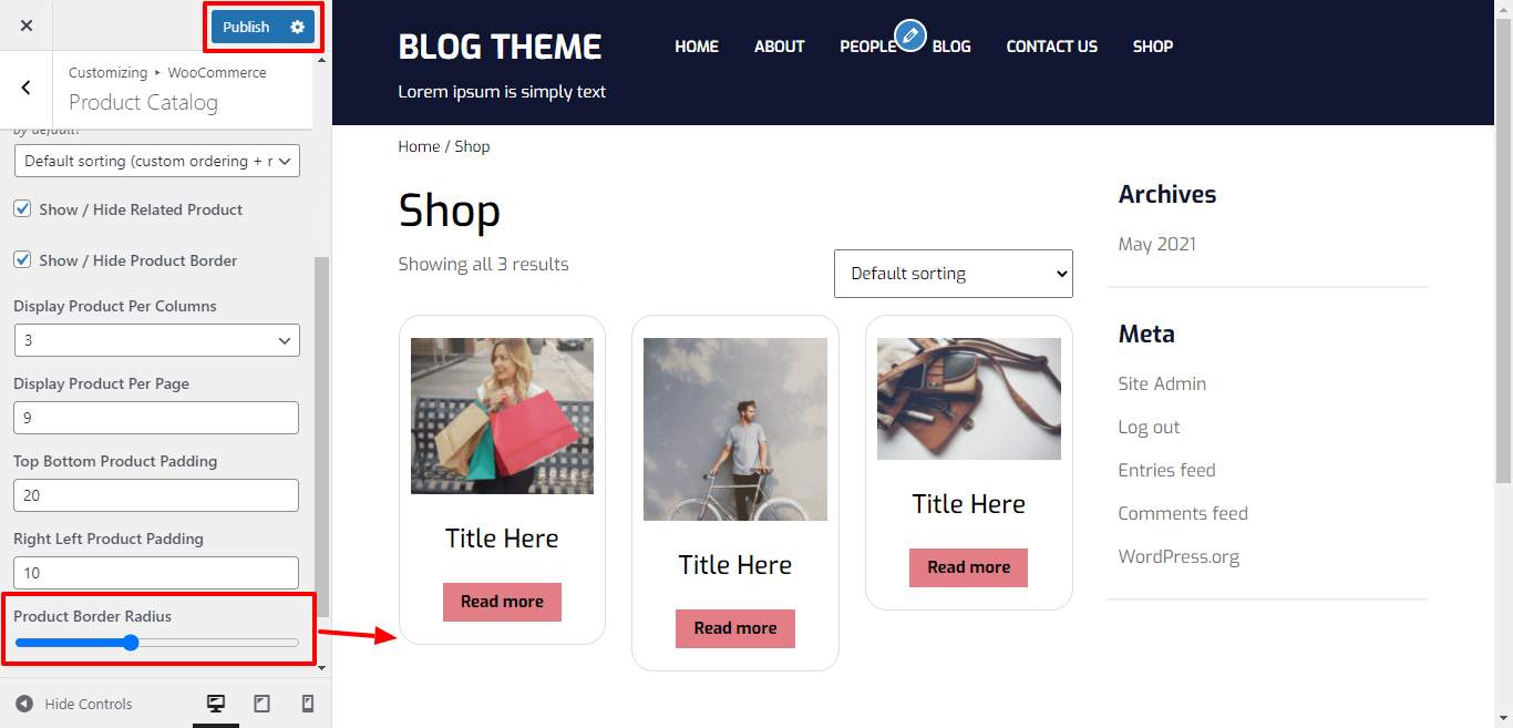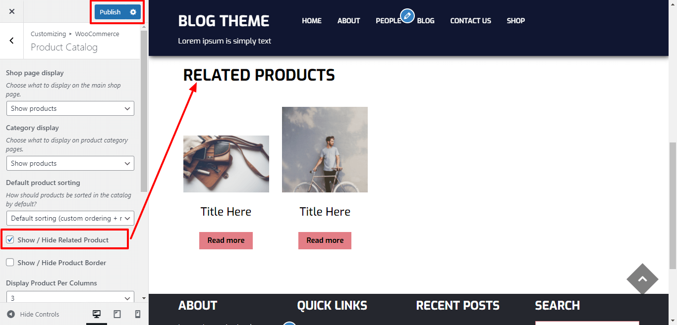 Here You have an option to Enable / Disable Feature Related product of shop page by click on checkbox.