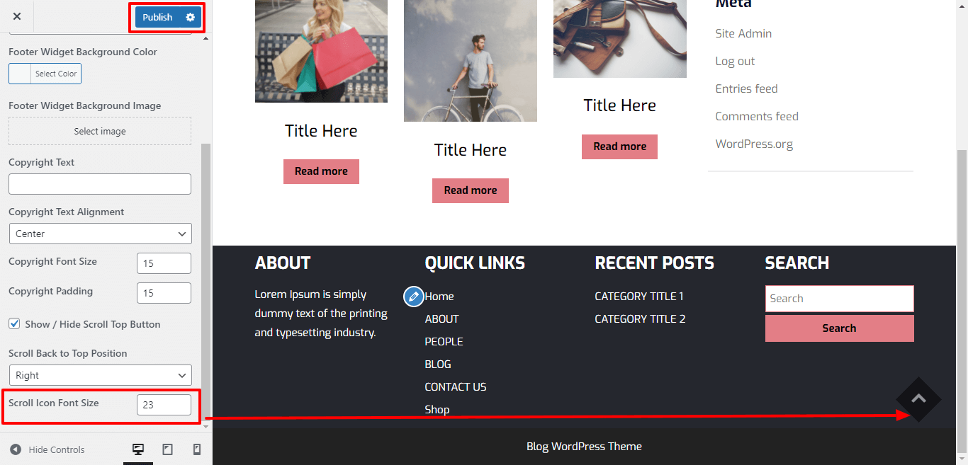 For show or hide Scroll Top Button, click twice on the checkbox and select the position for scroll top button.
