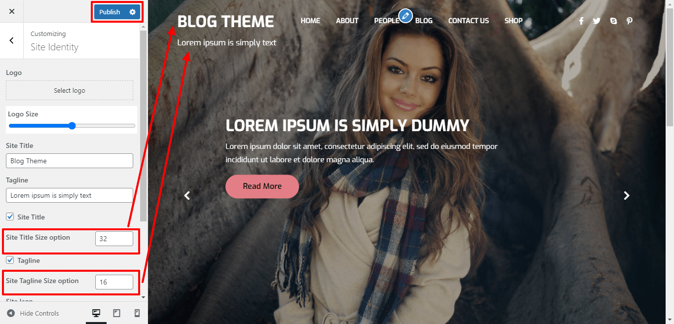 Go to Appearance >> Customize >> Theme Settings >> Typography