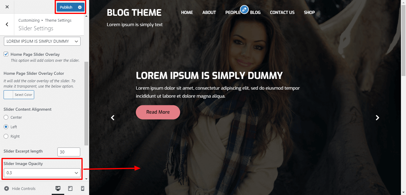 You can select the slider content alignment and select the slider excerpt length for slider content.