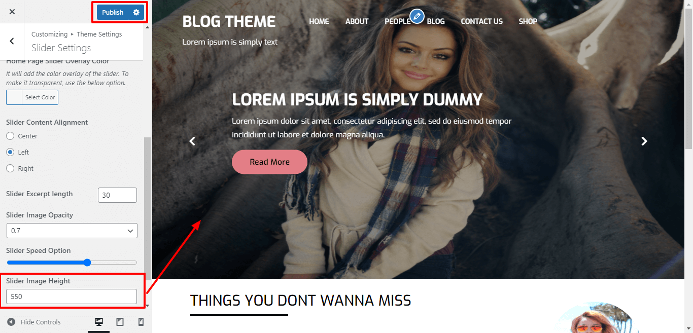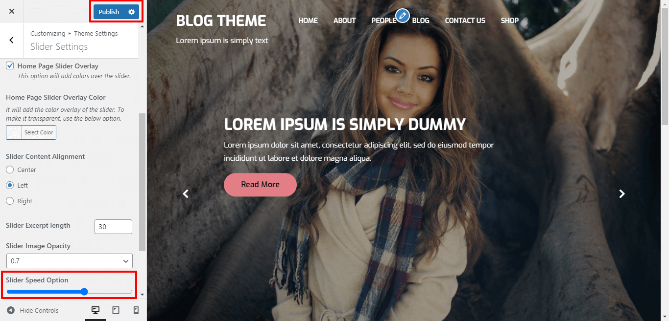 For Slider:Go to Appearance >> Customize >> Theme Settings >>Slider Settings