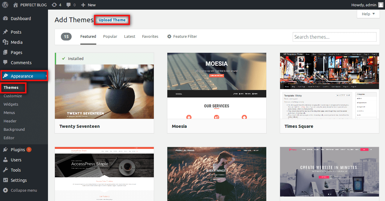 Remember you must unzip the folders before you upload a theme using FTP. Once you have uploaded the theme, you would need to go to your admin area and click on Appearance » Themes.