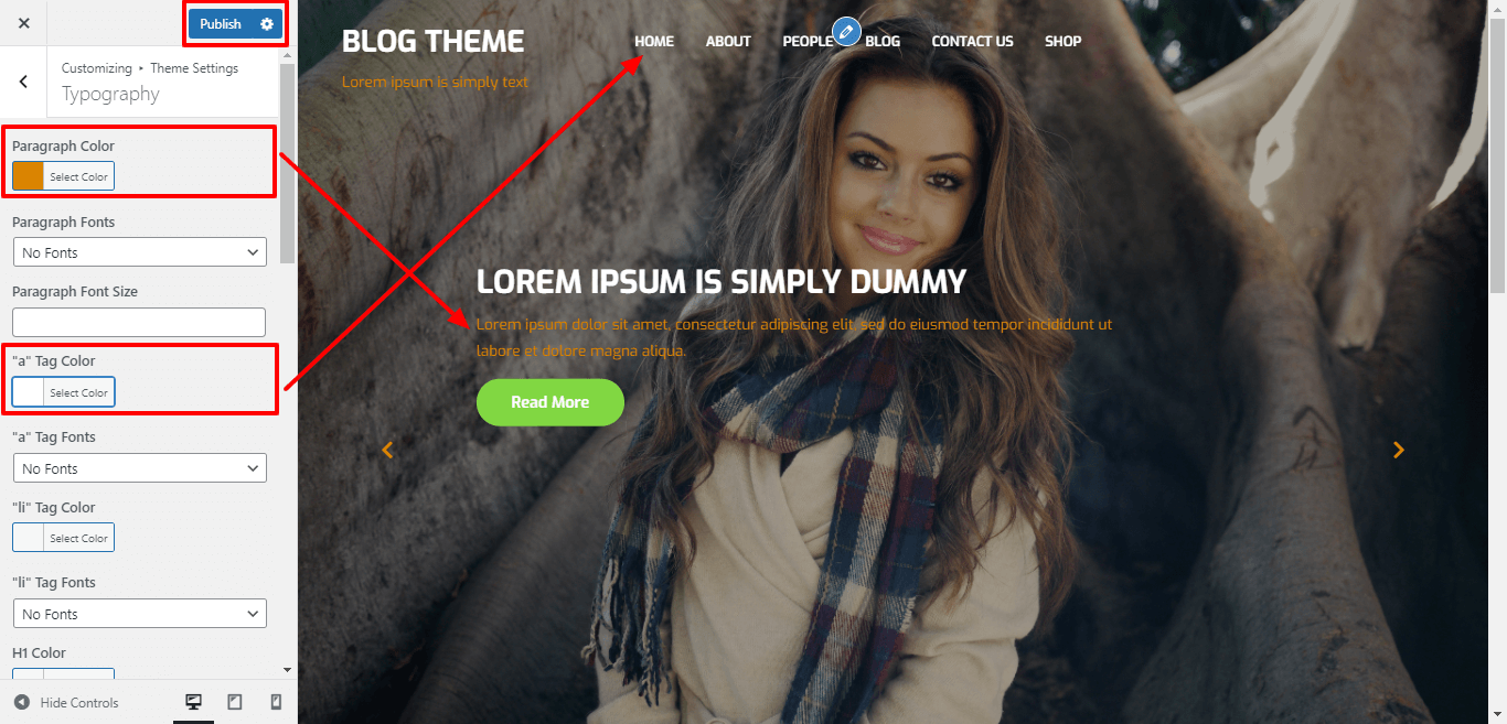1. Color: Here you can change the colors of all Paragraph, 'a' tag, 'li' tag, H1, H2, H3, H4, H5 and H6 respectively.