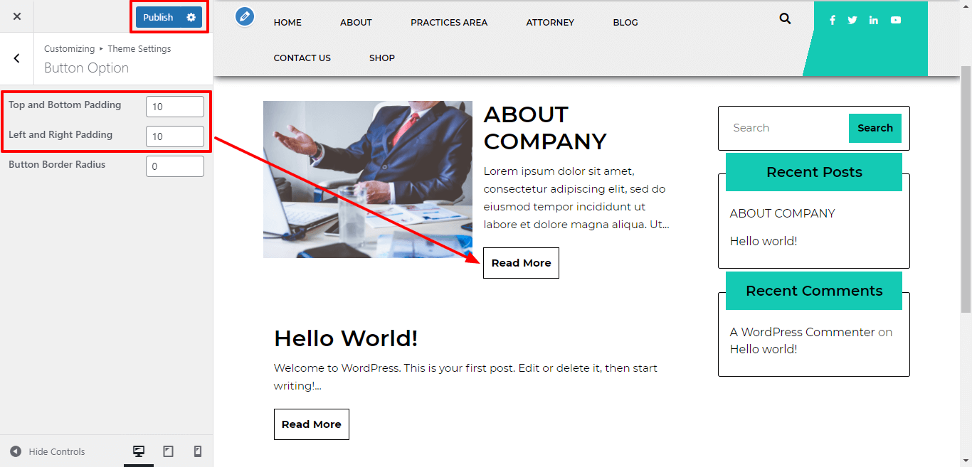 Here you can Give the Top-Bottom, Left-Right , Padding to the Button for the themes.