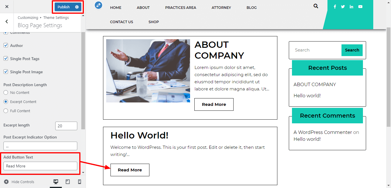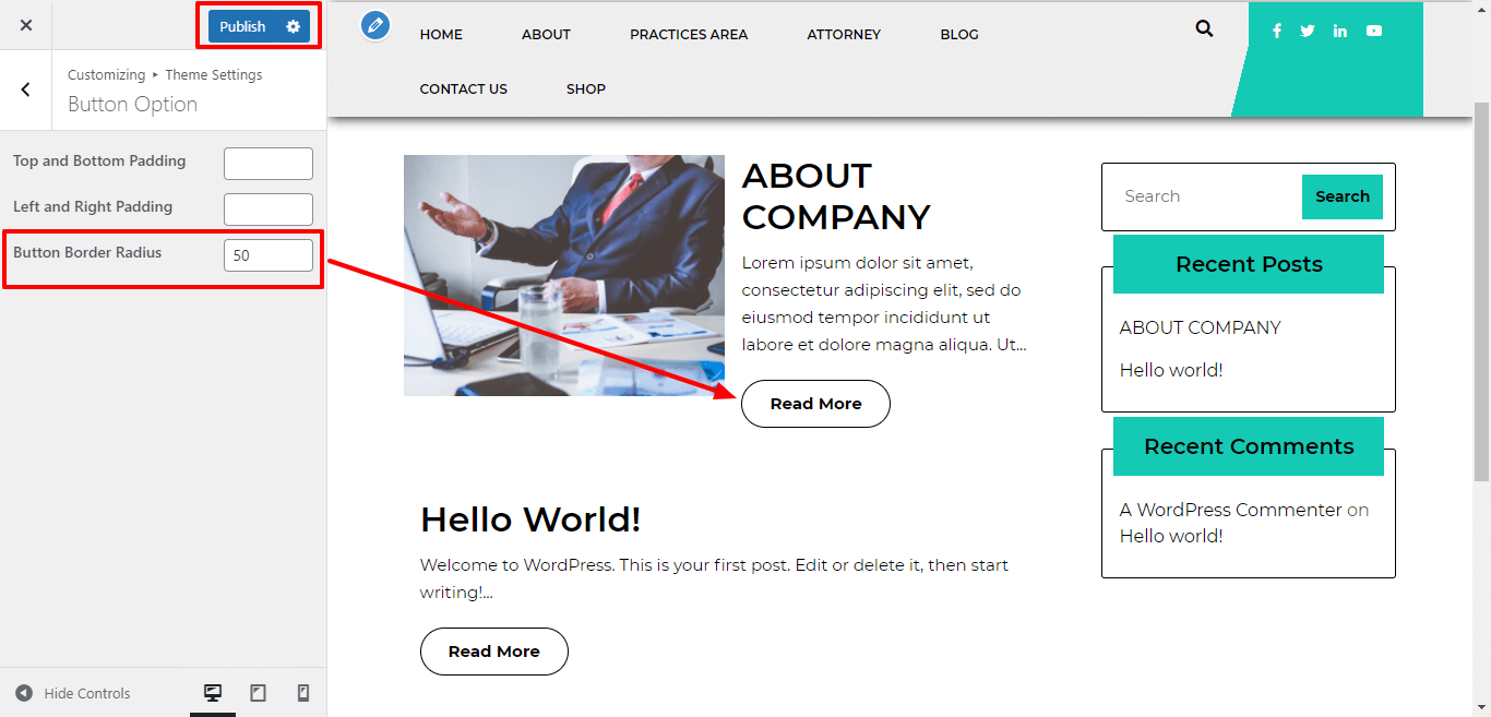 Go to Appearance >> Customize >> Theme Settings >> Button Options