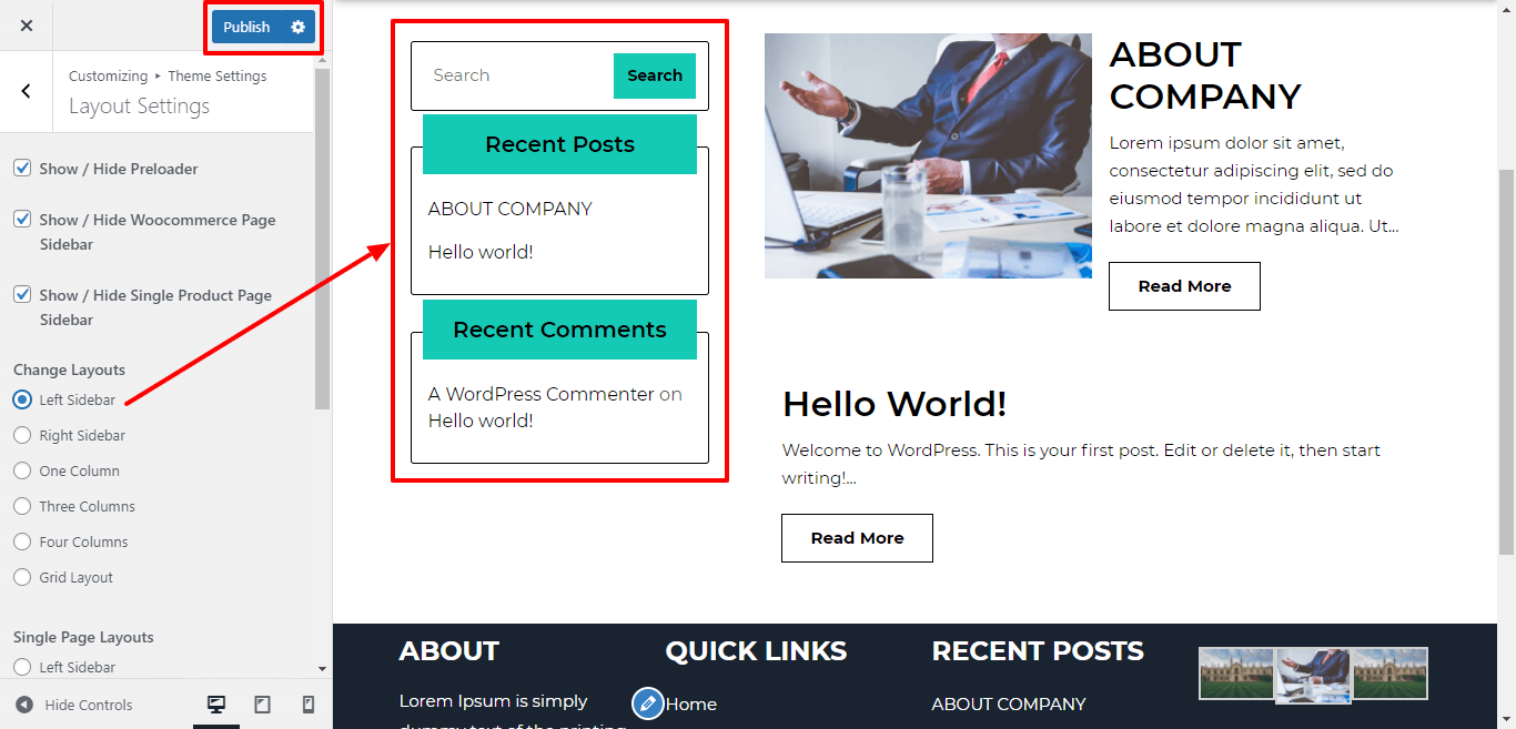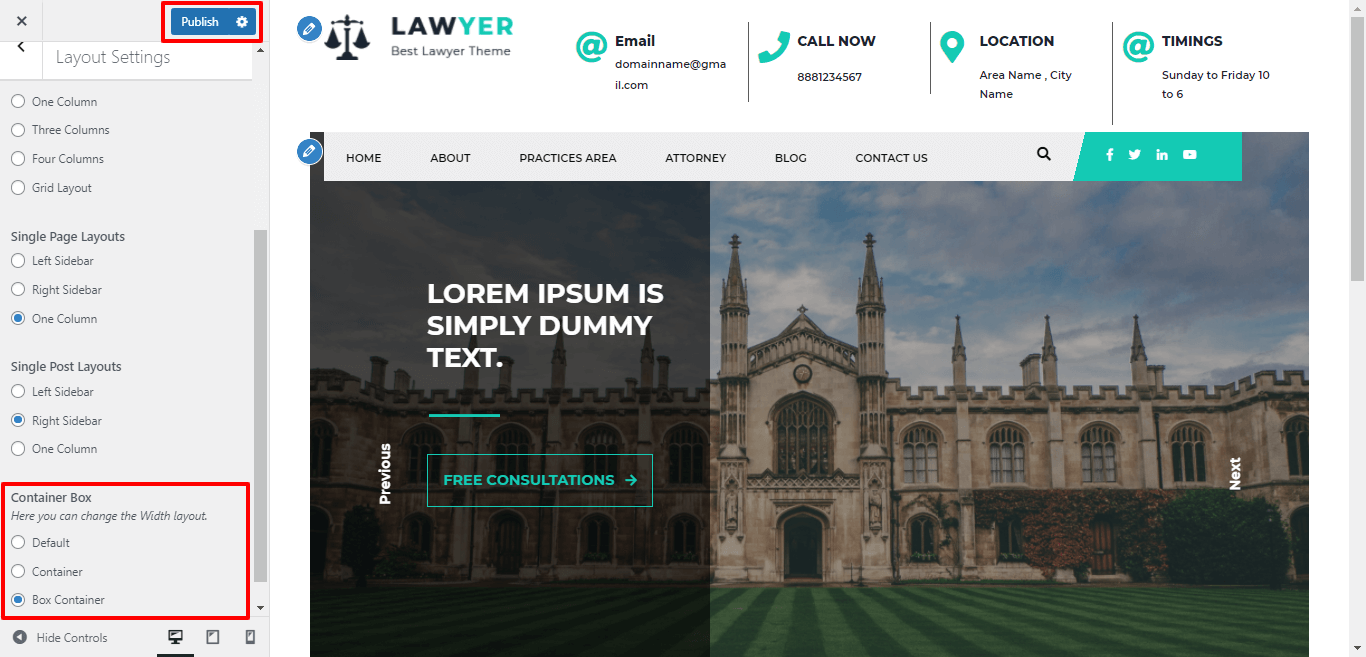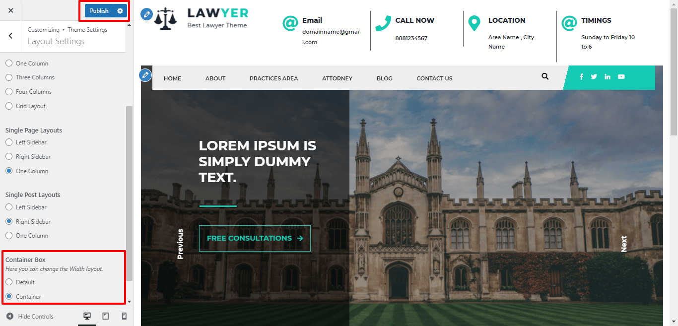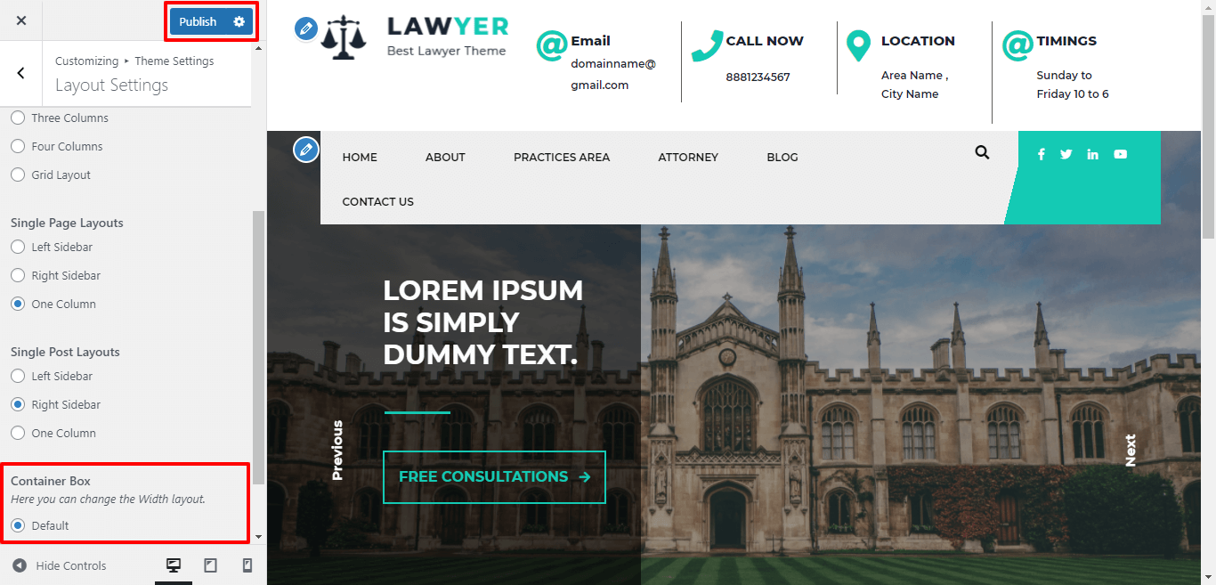 Go to Appearance >> Customize >> Themes Settings >> Layout Settings