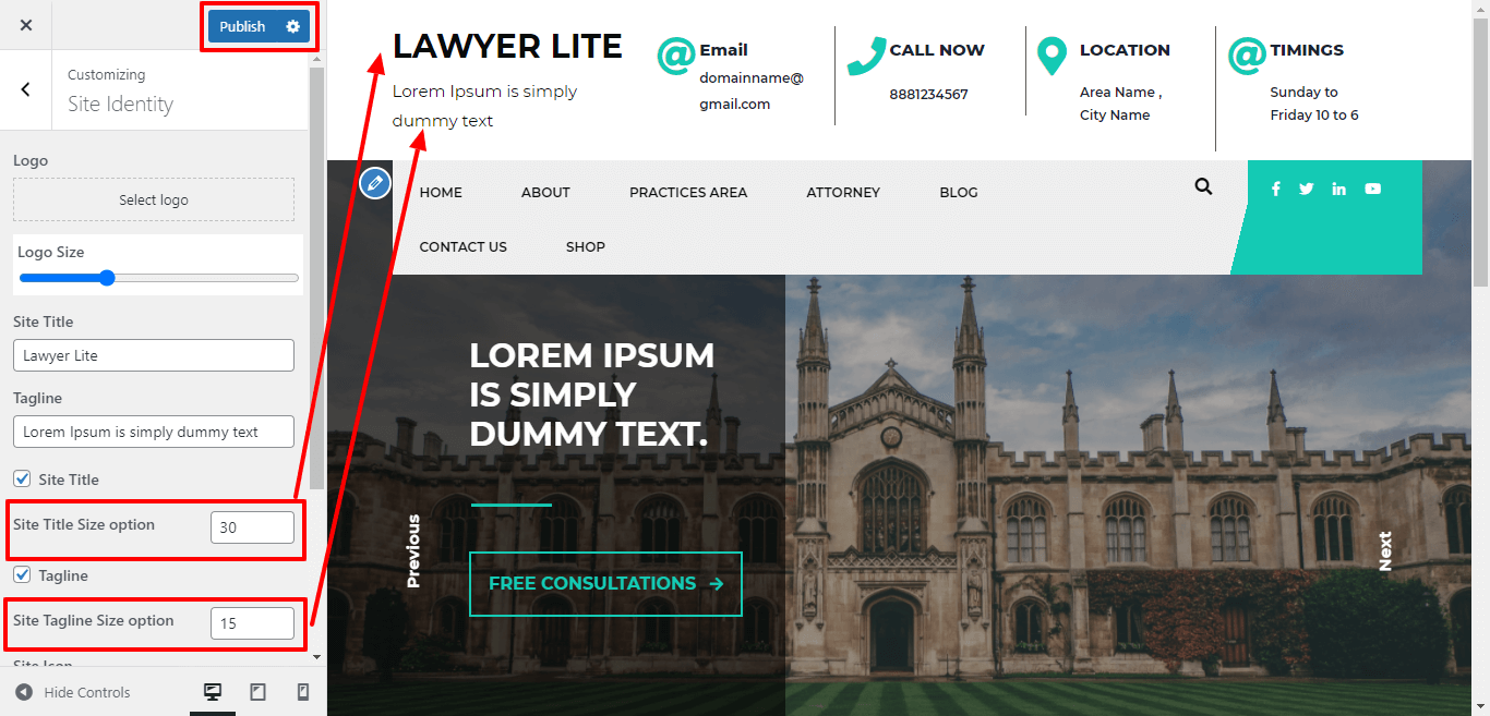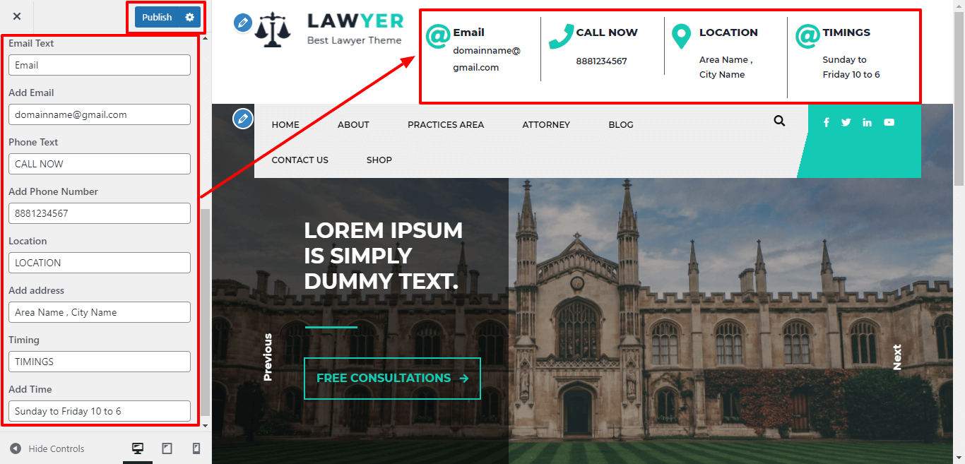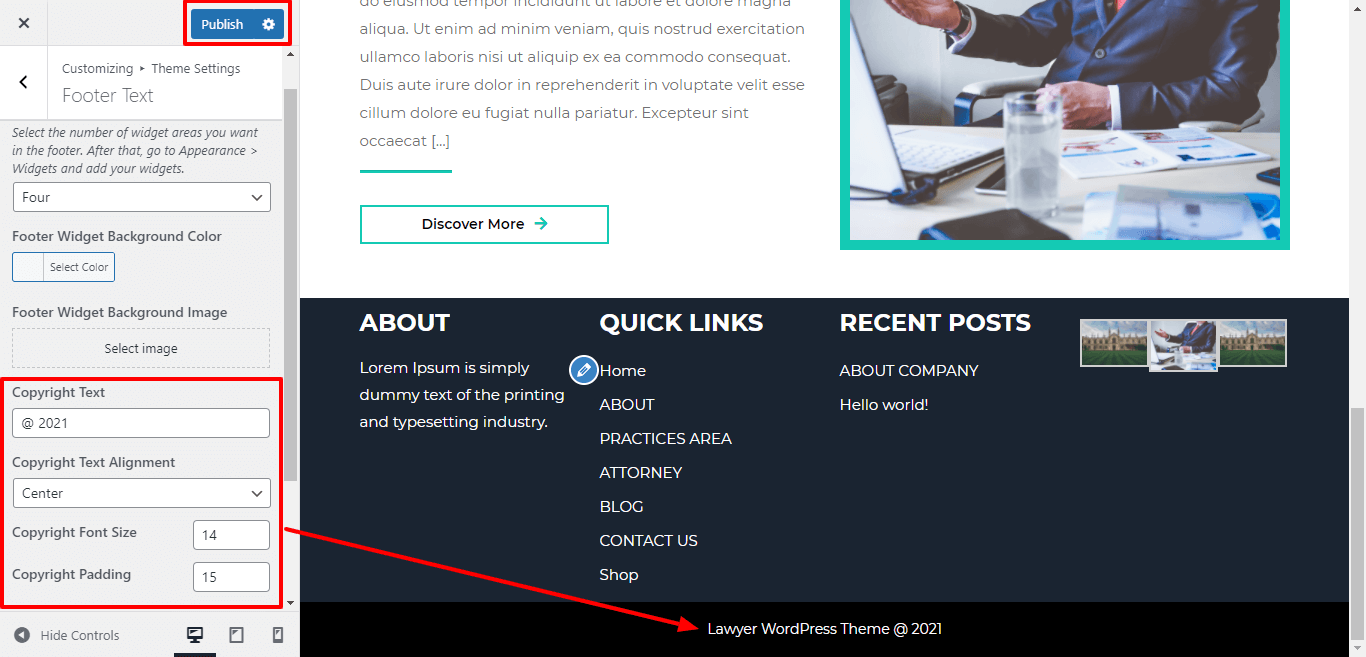 Here you can add the copyright text , copyright text alignment, copyright font size and padding for copyright text.