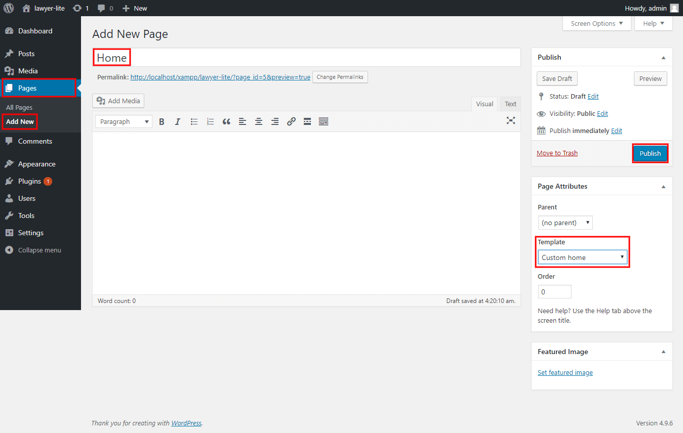 1. Create a new page and name it (Whatever the tittle you want to show on the slide) , set it's featured image, title, and the content. Repeat this process for other slides.