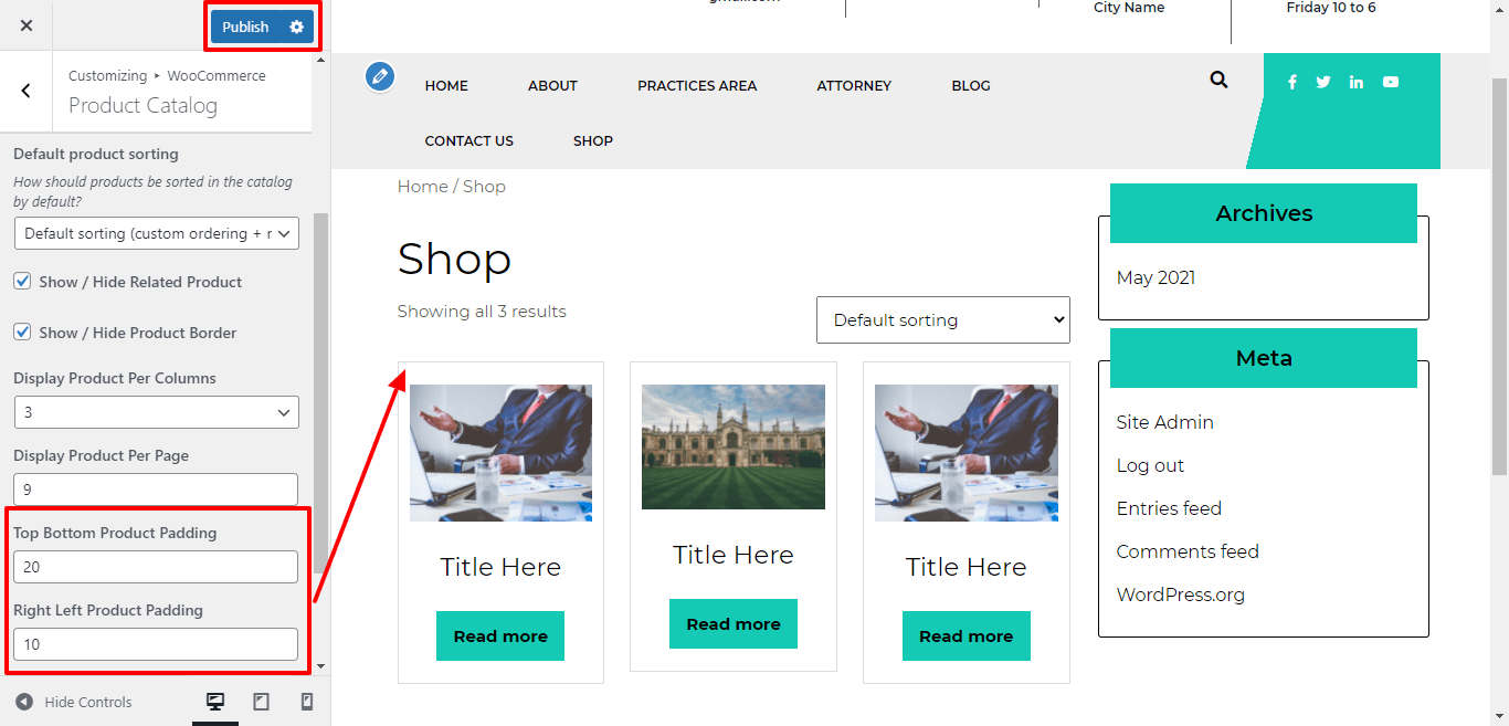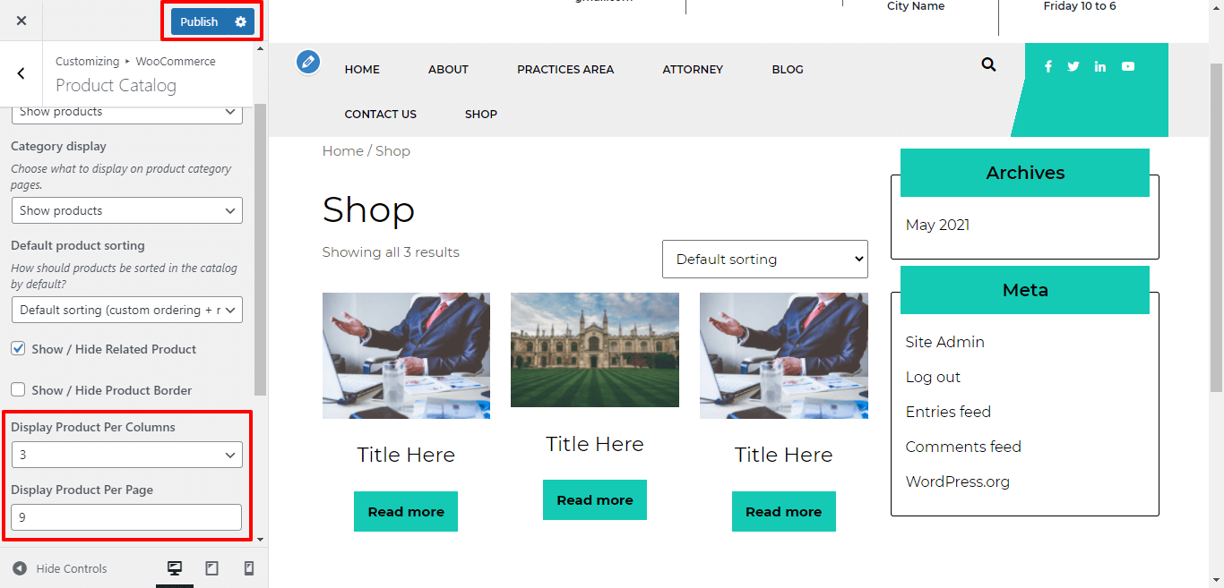 Here You have an option to add select the Number Of Product in one Row and single page.