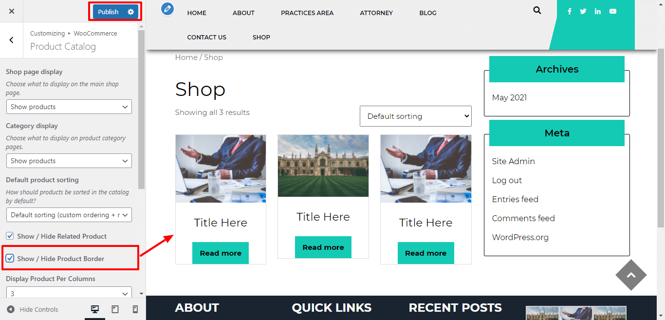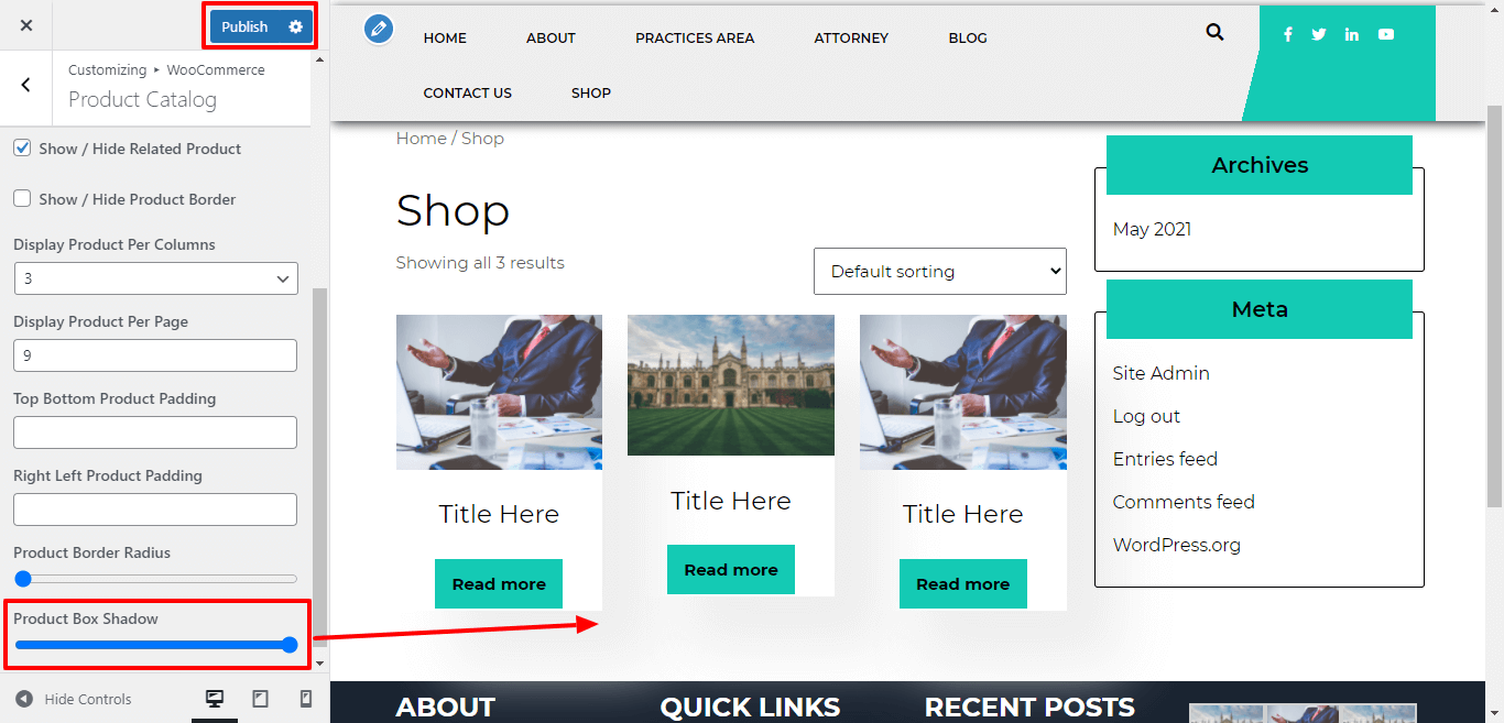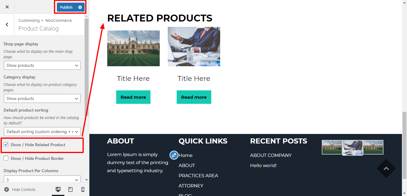 Here You have an option to Enable / Disable Feature Related product of shop page by click on checkbox.