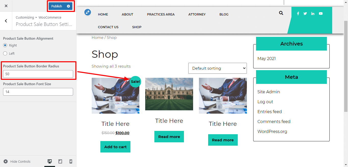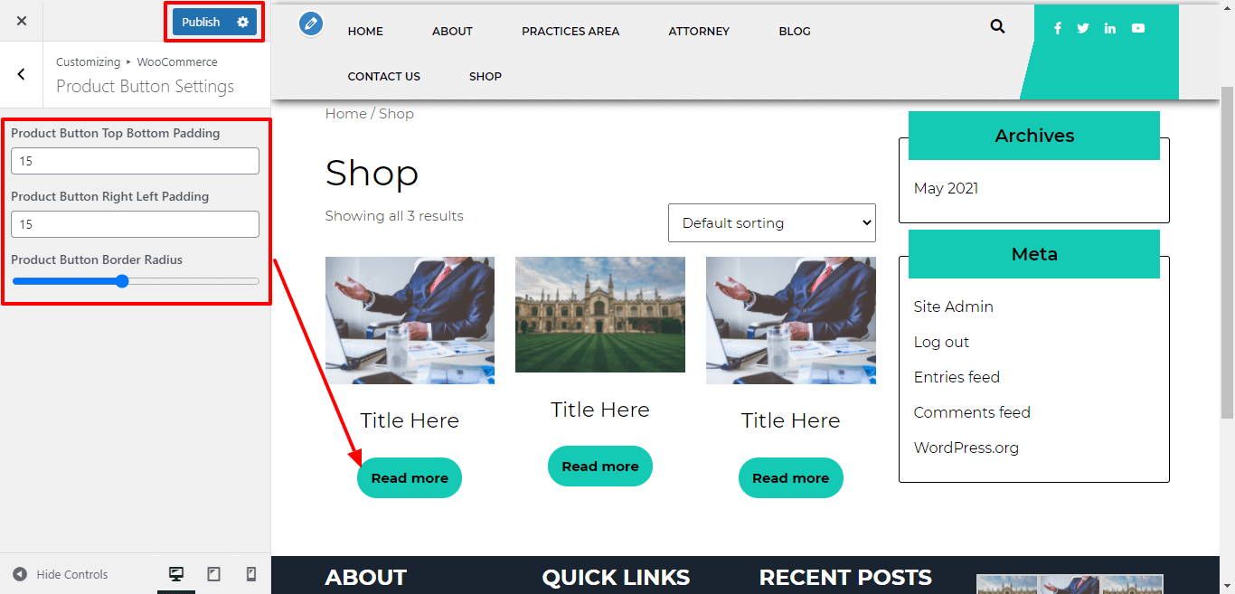 Here You have an option to add top-bottom, left-right padding product button and radius of product button for theme.