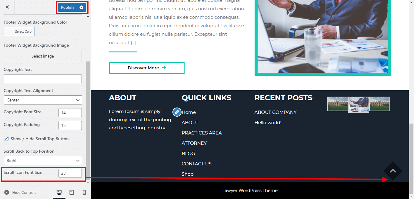 For show or hide Scroll Top Button, click twice on the checkbox and select the position for scroll top button.