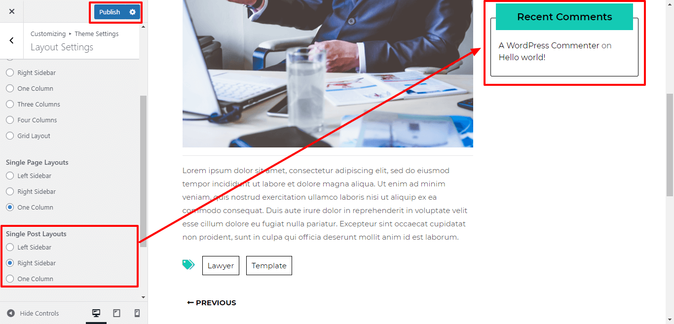 In Layout Settings, you can select the Blog Post Layout Sidebar.