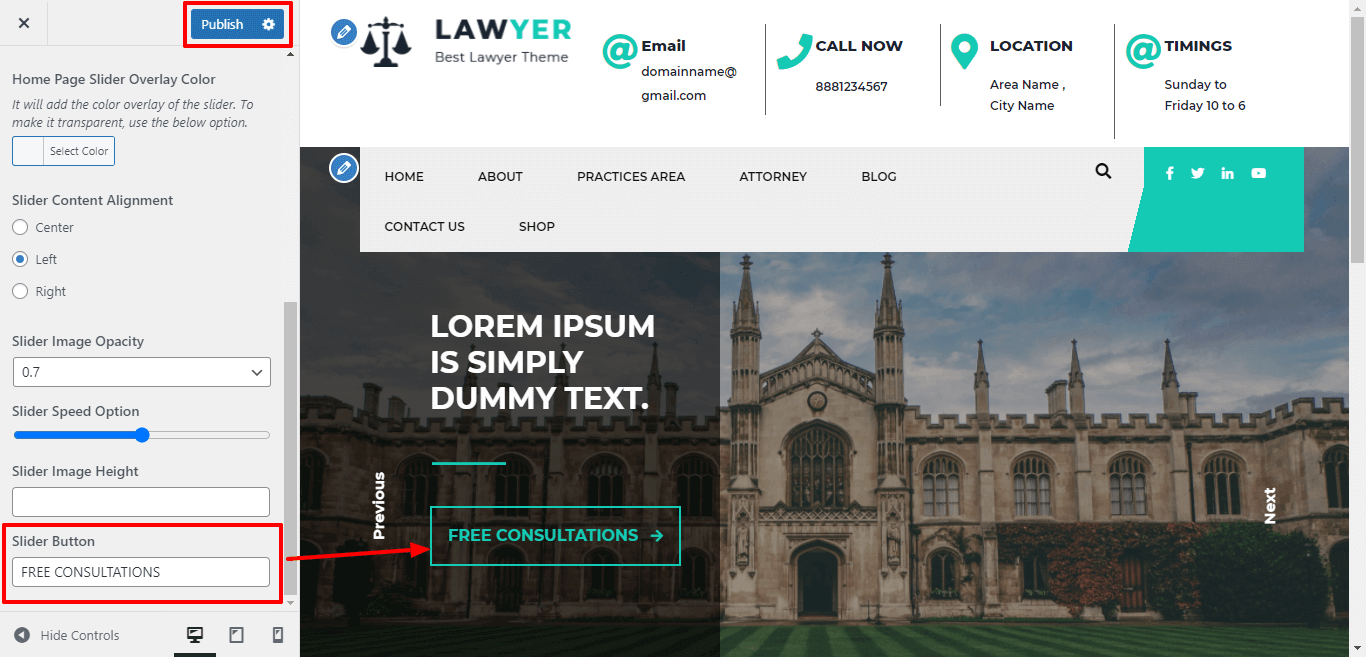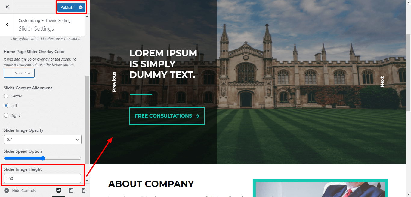 For Slider:Go to Appearance >> Customize >> Theme Settings >>Slider Settings