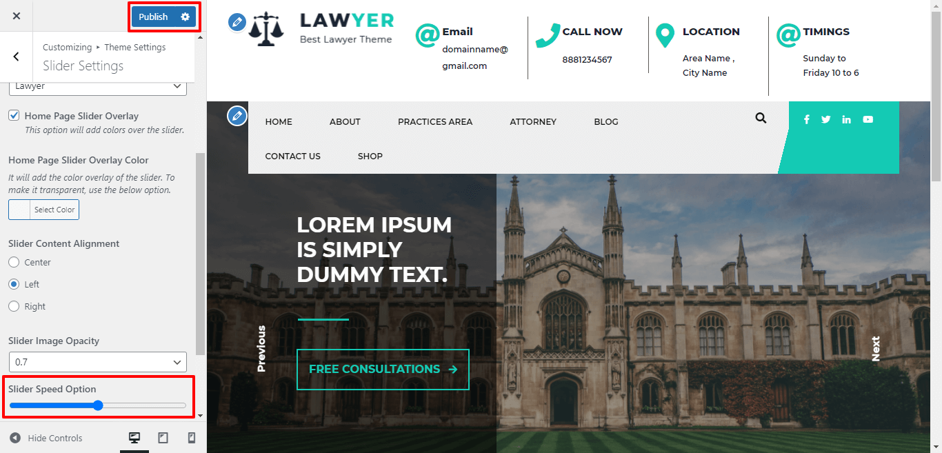 Here You have an option to the speed of slider to load slider fast for the theme.