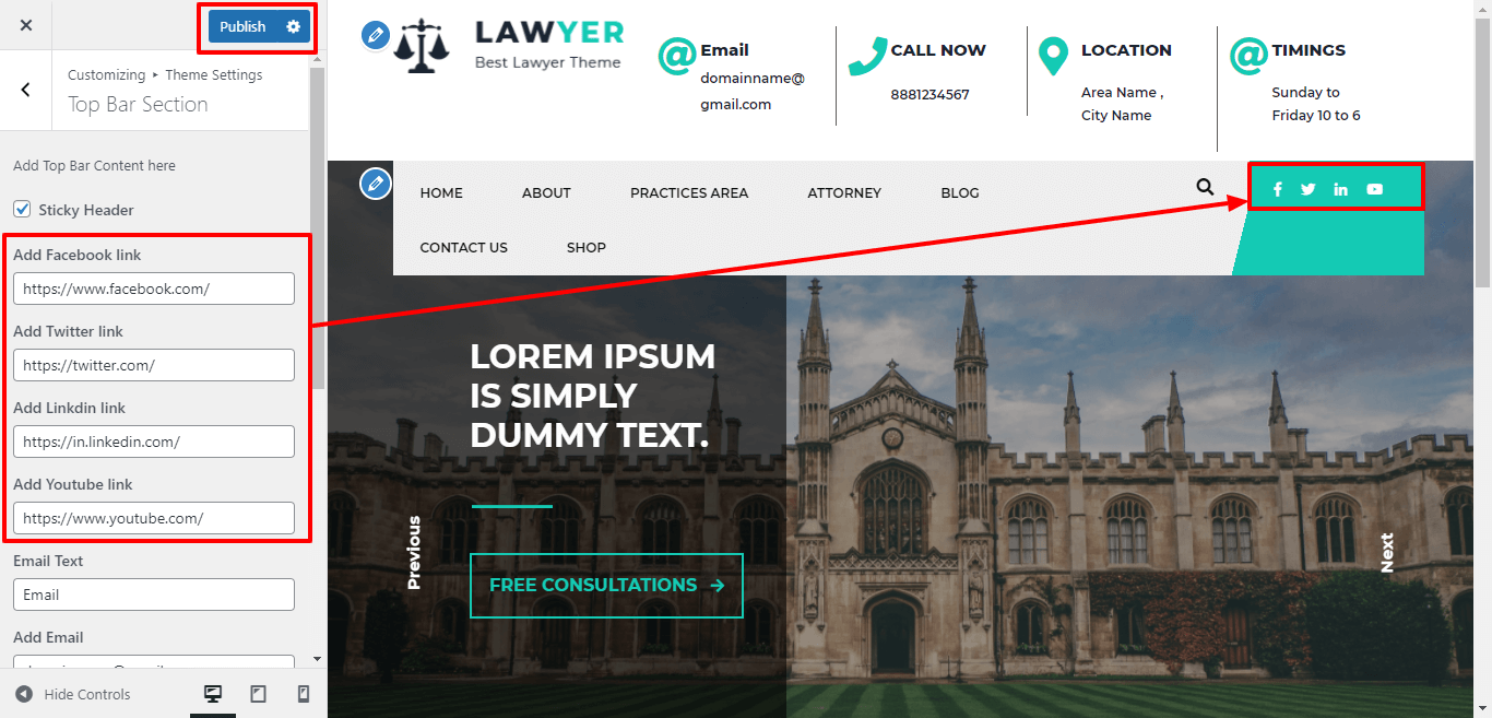 Here you can add your social media links through which user can directly redirect to your social media sites.