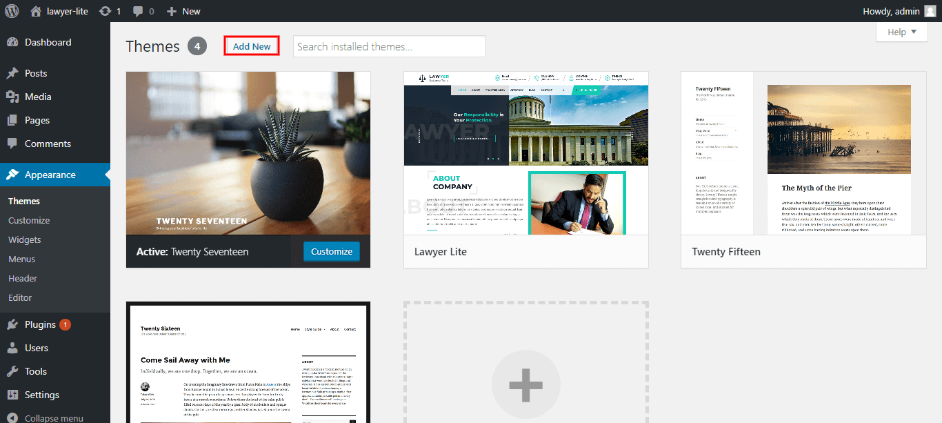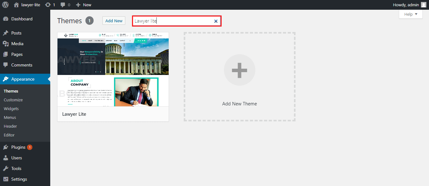 Based on your search, you will see a single theme or a list of themes that met your criteria. In our case, we searched for the theme lawyer-lite.