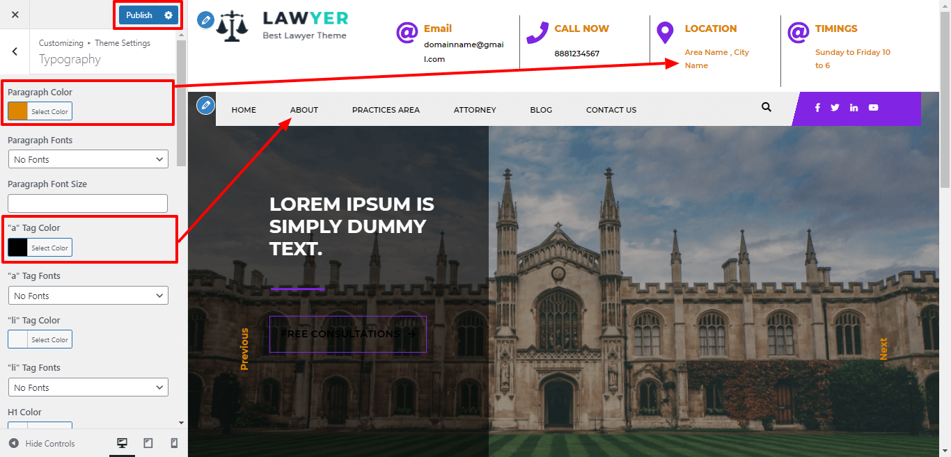 1. Color: Here you can change the colors of all Paragraph, 'a' tag, 'li' tag, H1, H2, H3, H4, H5 and H6 respectively.