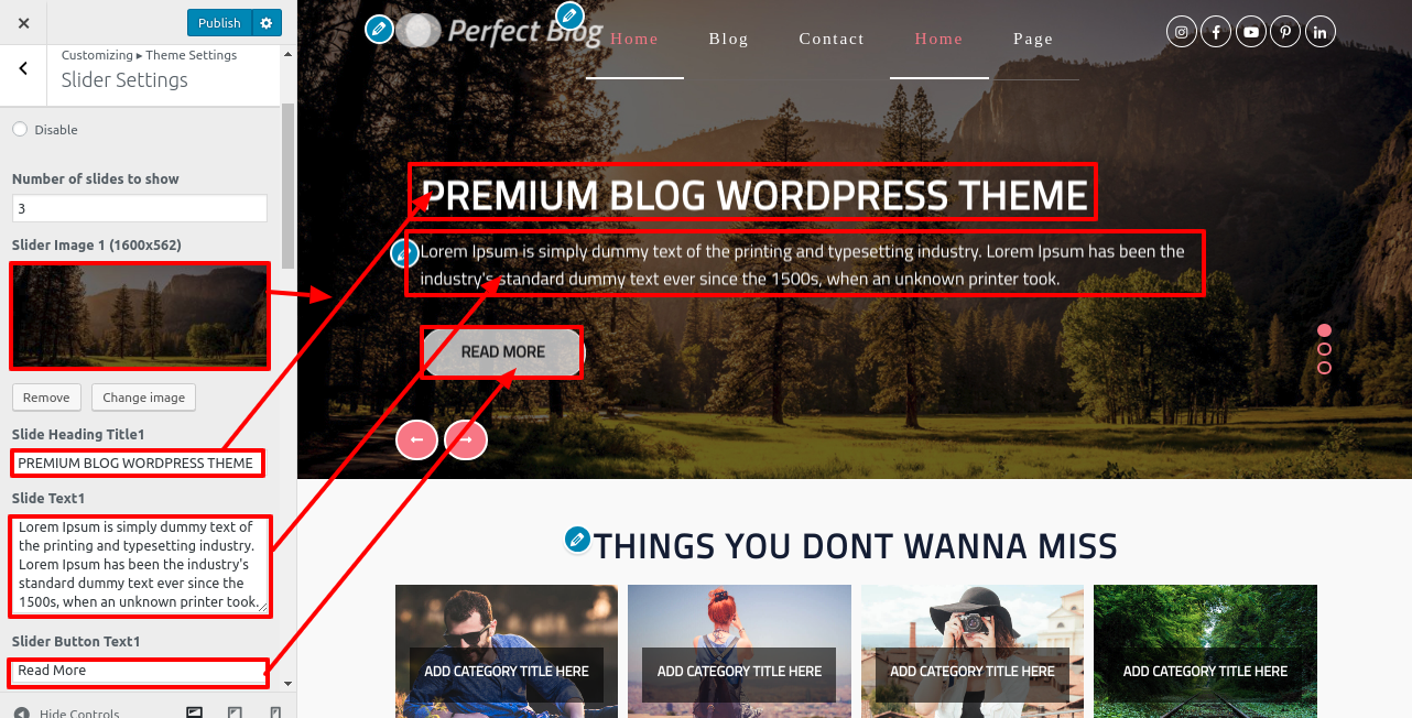 You can customise the slider's image, title, and description in this section. You can change how many slides there are.