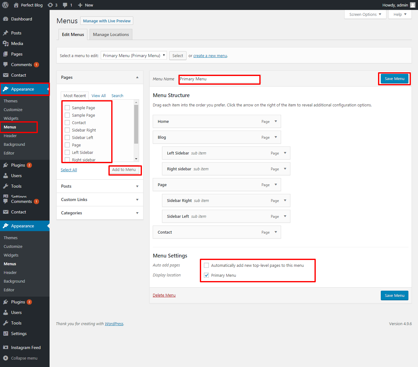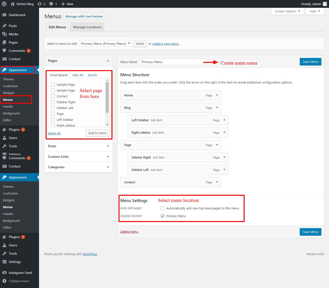 2. Go to >> Dashboard >> Appearance >> Menu.