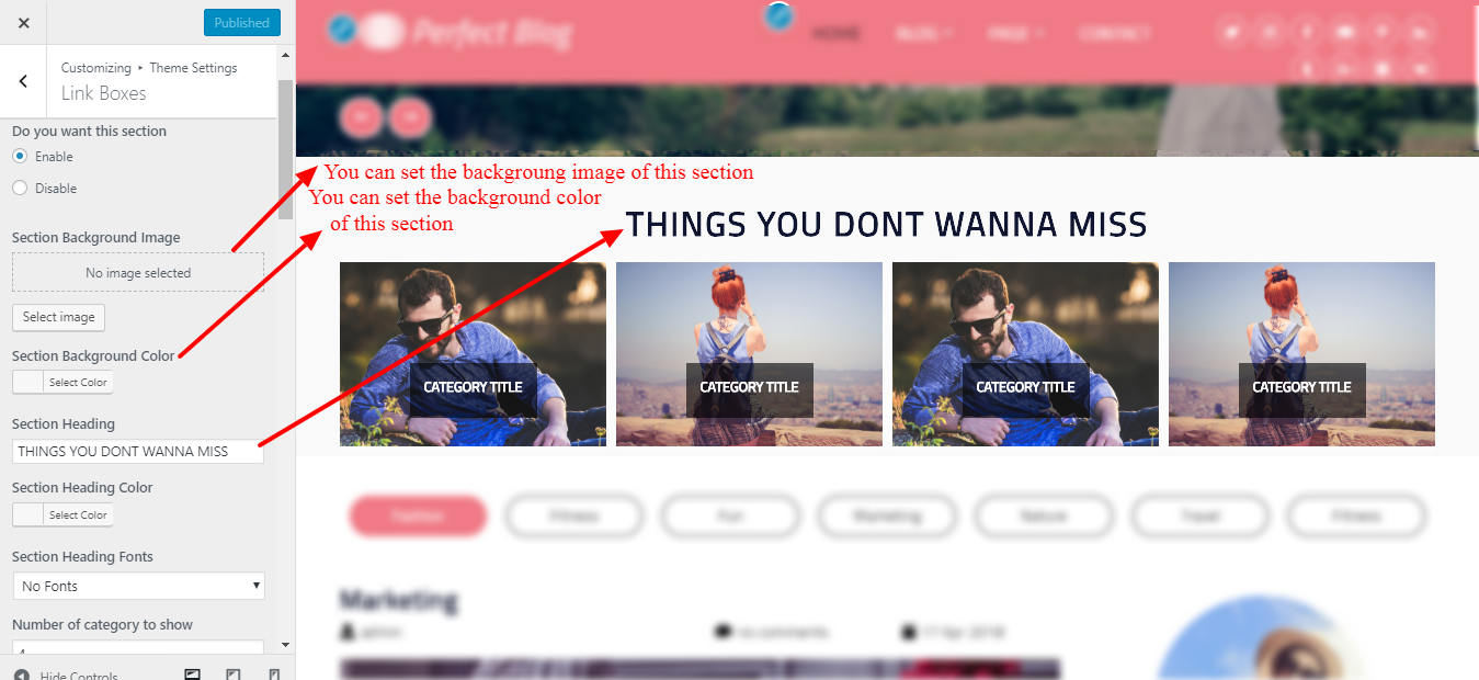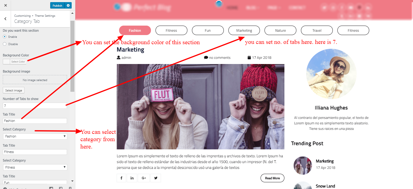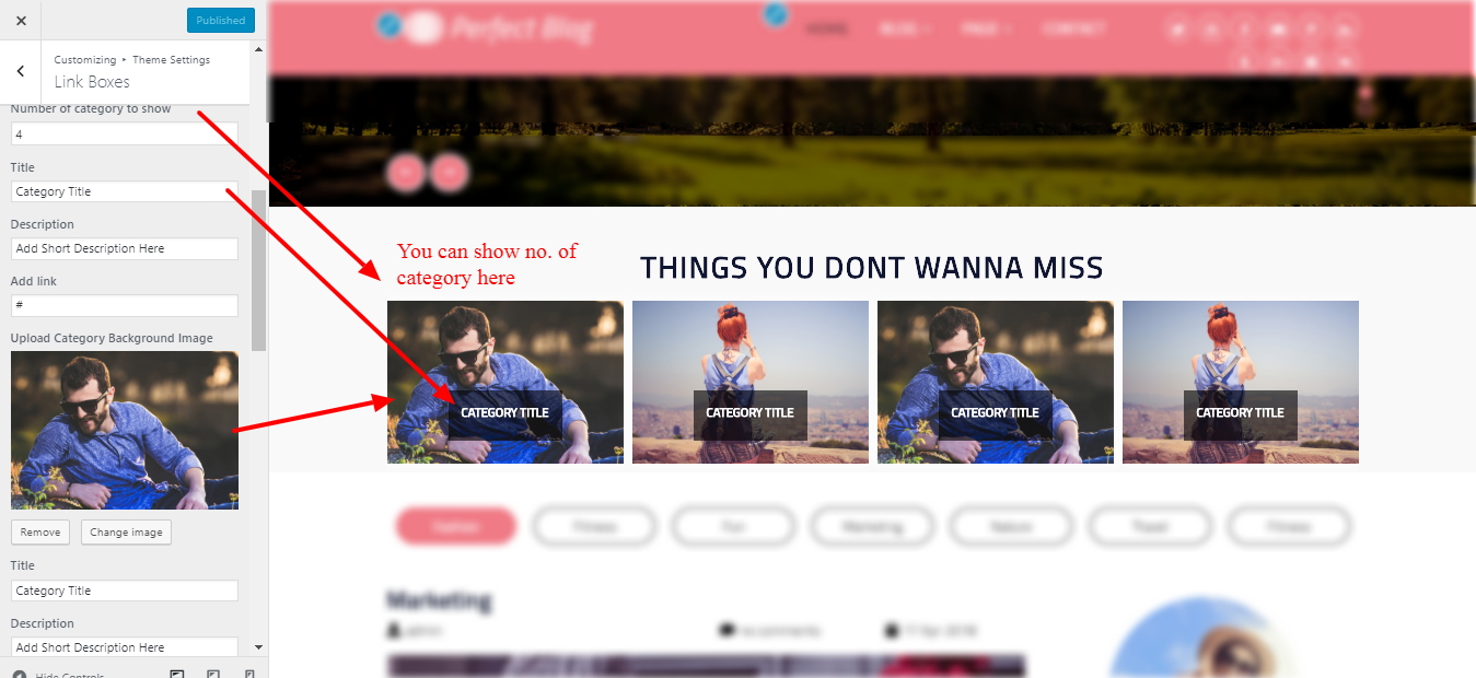3. Go To >> Appearance >> Customize >> Theme Settings >> Category Tab.