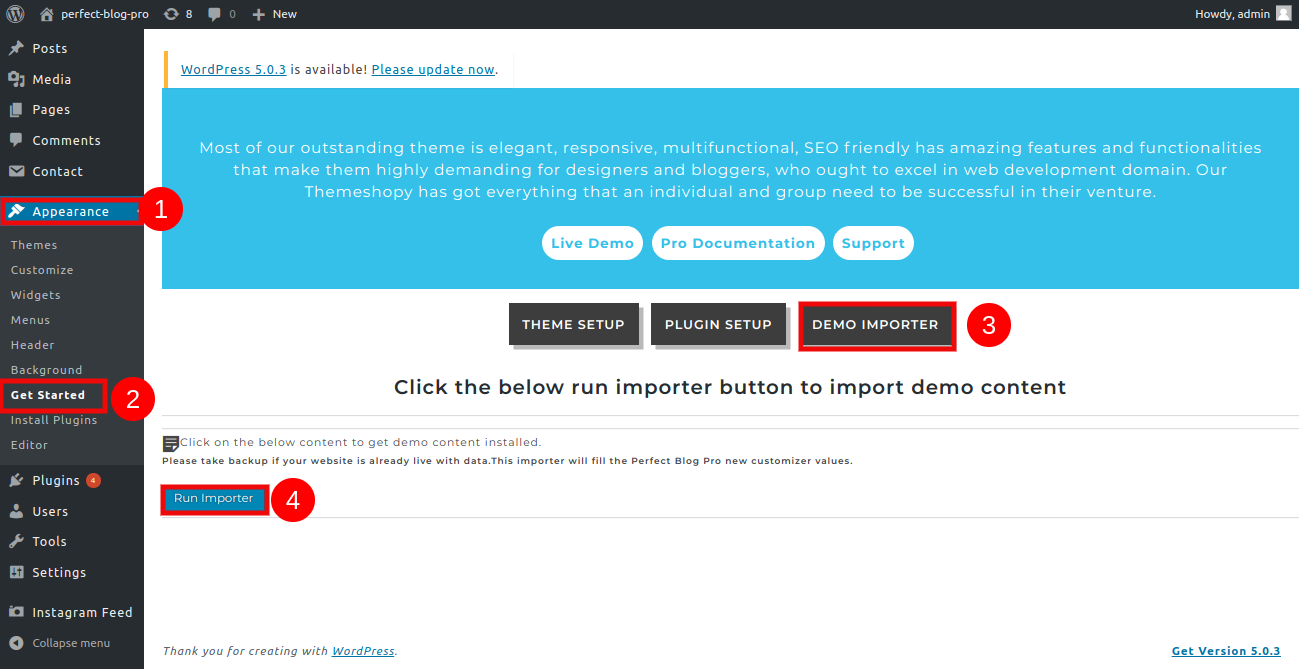 Next select "Run Importer" after selecting "Demo Importer".