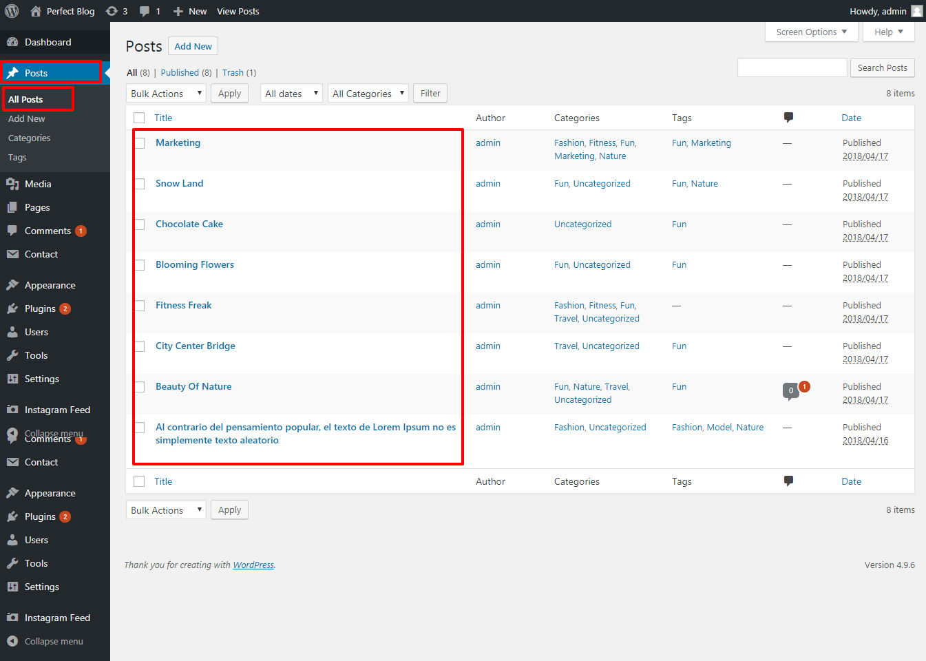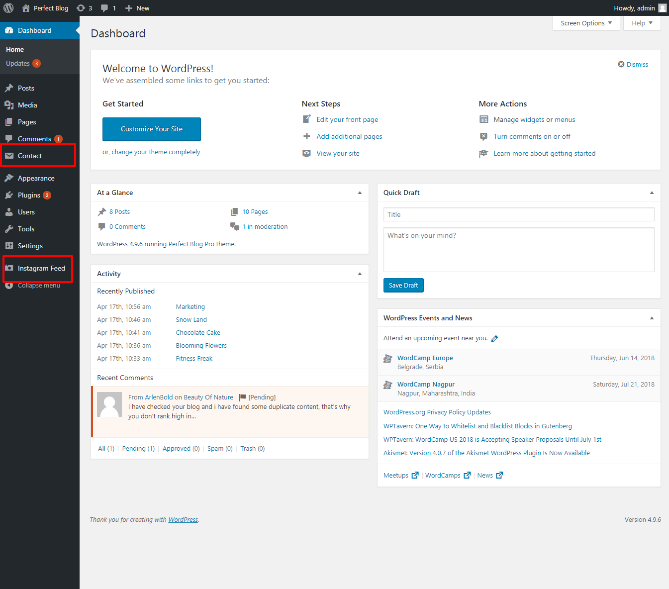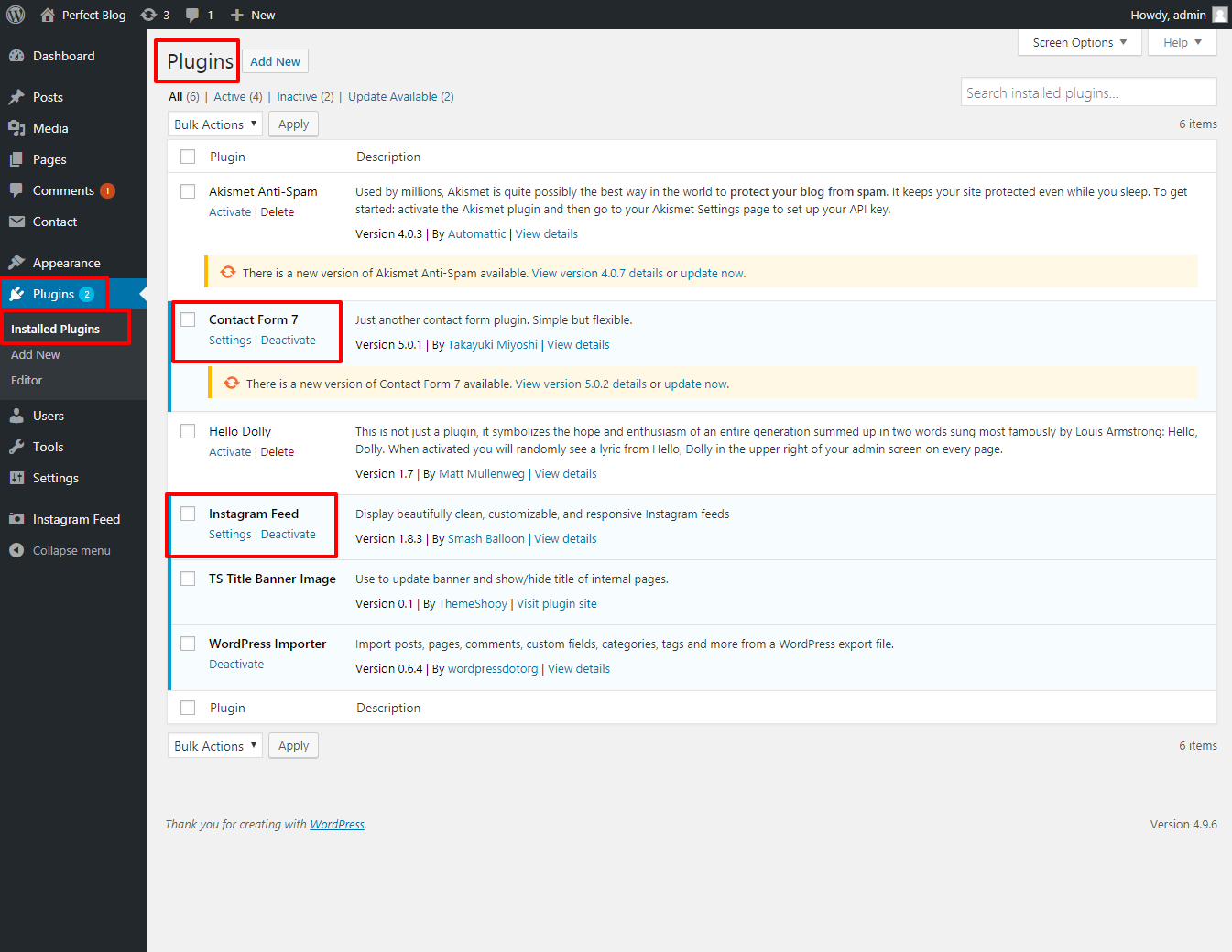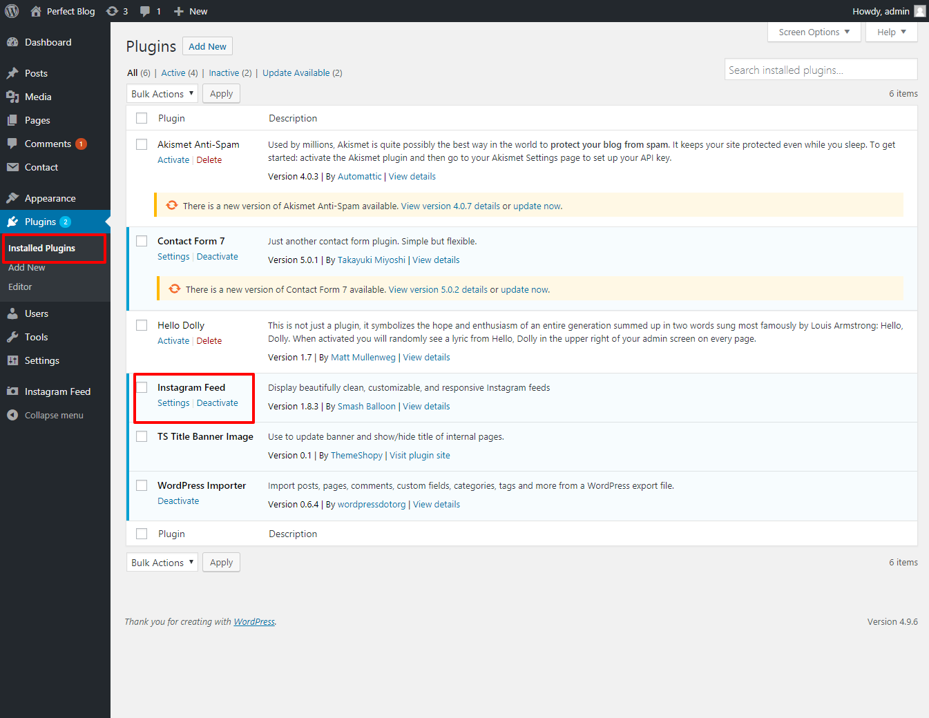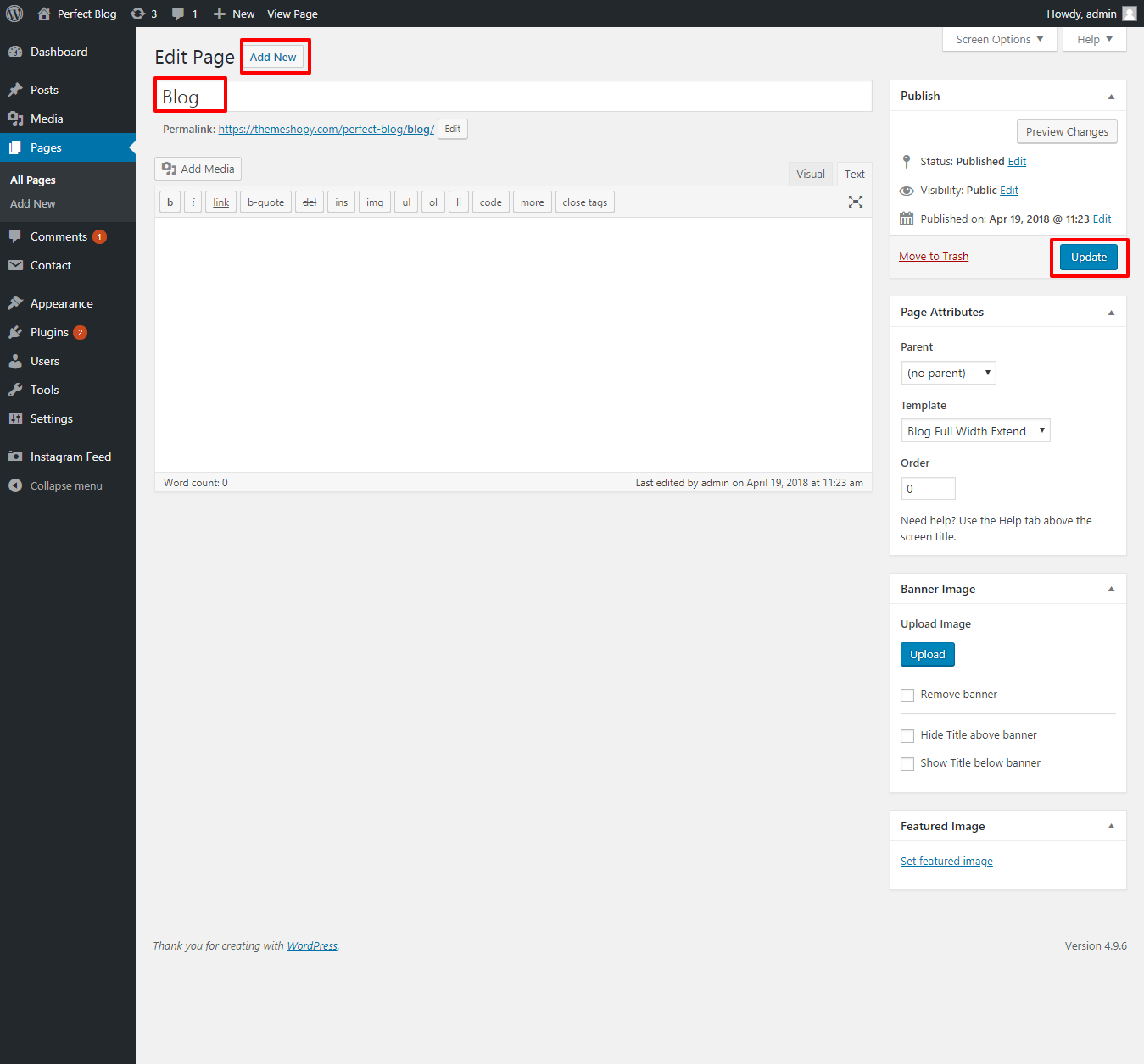 You must add and activate the Perfect Blog plugins in the Plugin section.