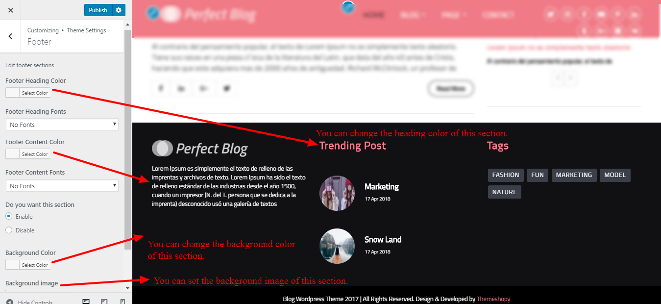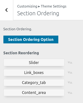 To reorder a section simply means to arrange it according to our needs. Drag the segment to the top or bottom as necessary to continue with this section. Your front view will change in accordance with customizer options when you drag any portion to the top or bottom.