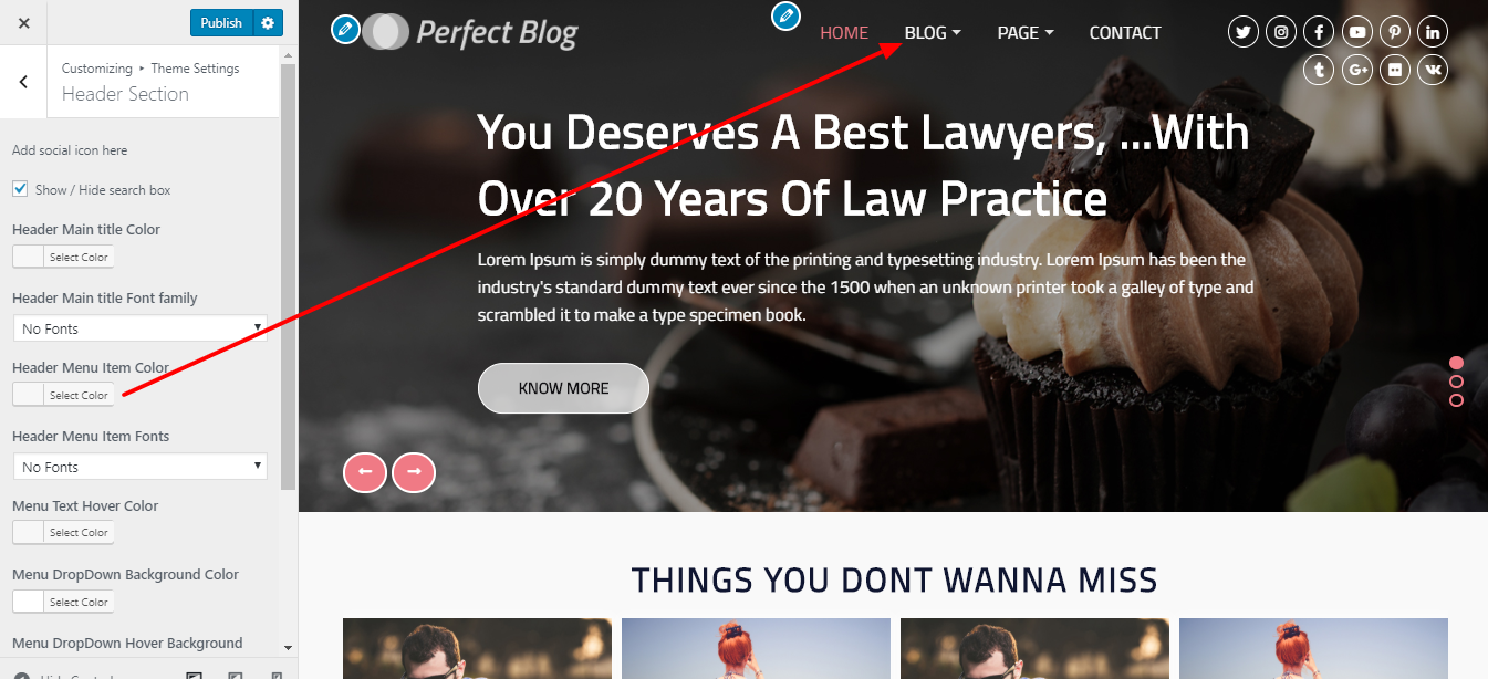 3. Go to >> Appearance >> Customize >> Theme Setting >> Header Section.