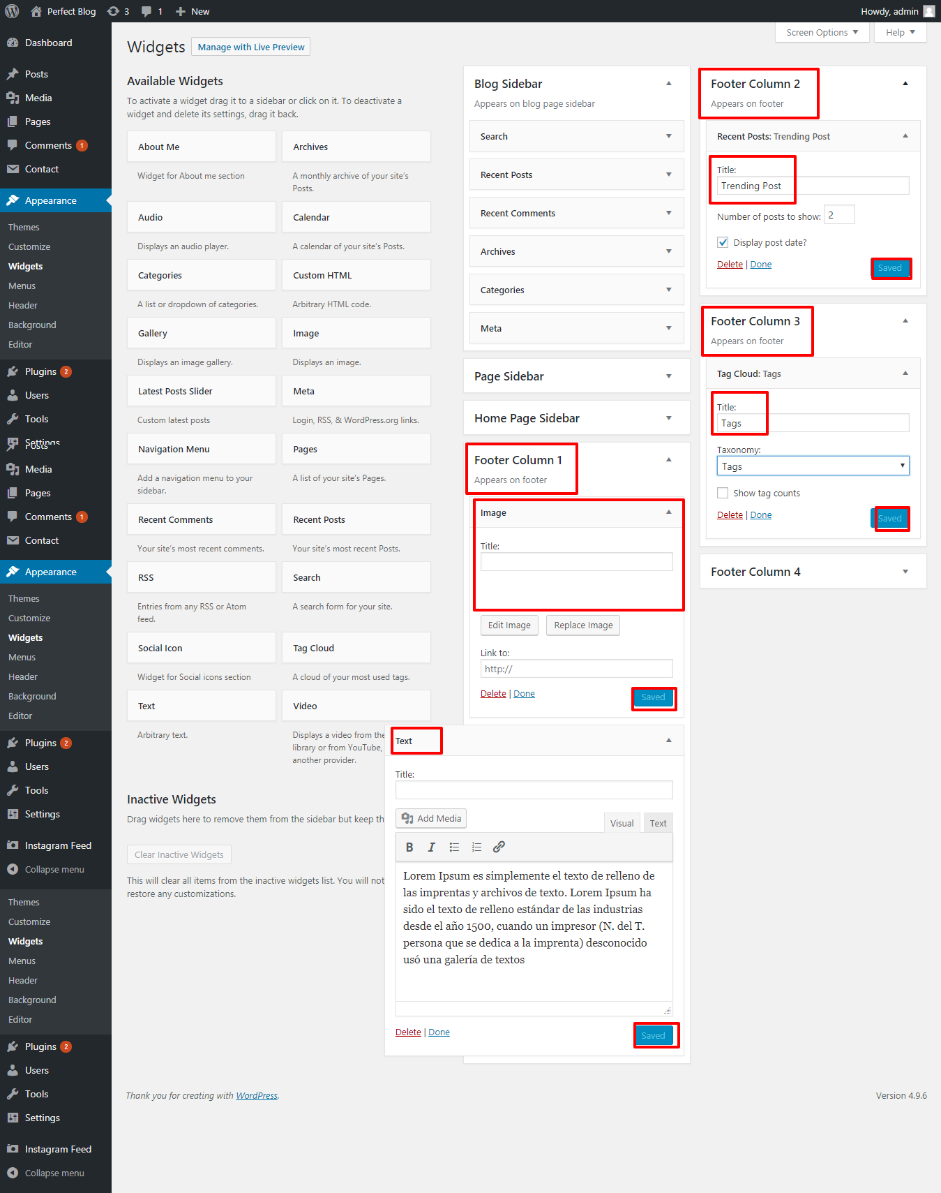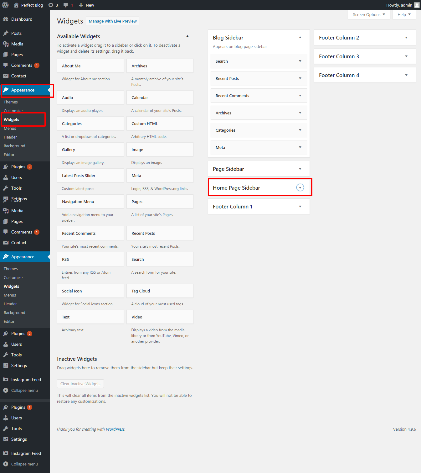 GO to Dashboard >> Appearance >> Widgets.